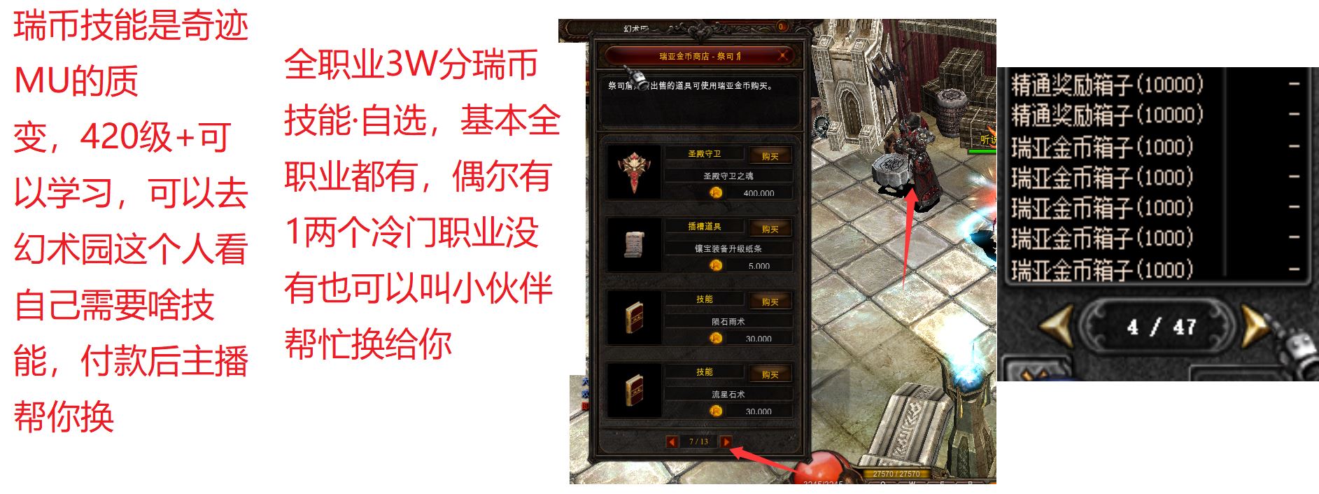 全职业瑞币技能,3W分瑞币技能,·等级420+可以用,奇迹最强技能,学了直接质变