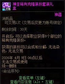 神圣稀有克隆装扮套装礼盒 当面交易