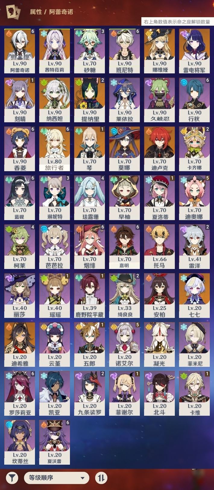 【终身找回包赔】【IYMZXGEHD】58级,28黄,女主,12个五星角色:满命阿蕾奇诺,2命提纳里,1命刻晴,1命琴,茜特菈莉,娜维娅,雷电将军,纳西妲,莫娜,迪卢克,七七,迪希雅,6个五星武器:精