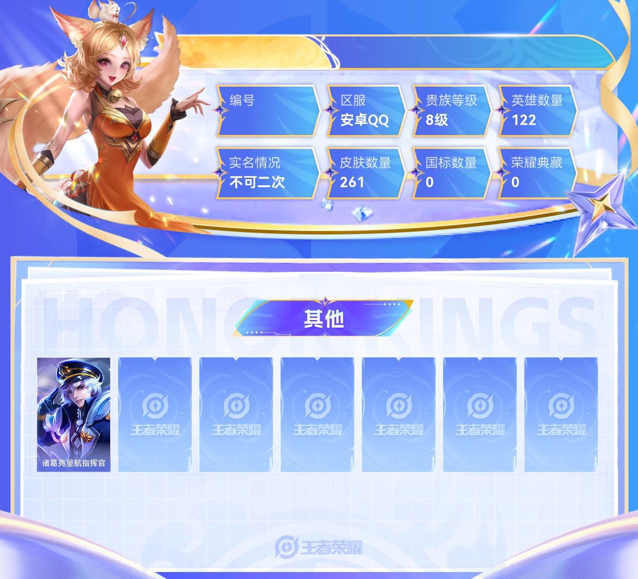 【终身找回包赔】【6P8XY1A1F】稀有英雄1珍品传说2无双1传说19史诗77限定86英雄122皮肤261贵族8级皮肤价值:184938 【稀有英雄1】_武则天 【珍品传说2】嫦娥器灵落星盏马可波罗