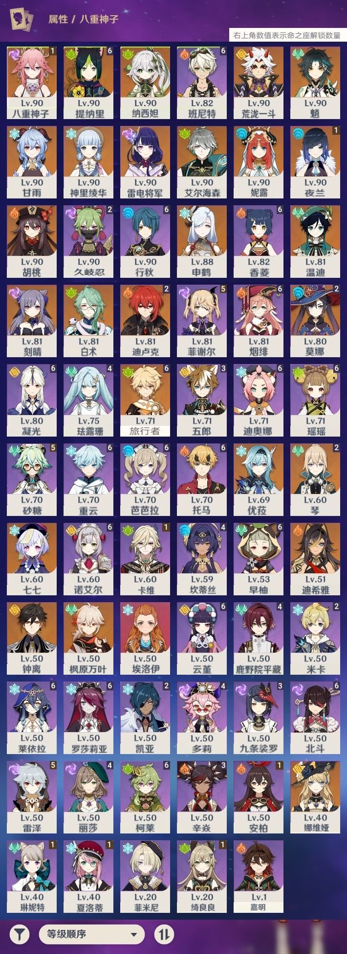 【终身找回包赔】【IQOMNBGCG】59级,47黄,男主,25个五星角色:满命提纳里,2命迪卢克,2命莫娜,2命琴,1命八重神子,1命夜兰,纳西妲,荒泷一斗,魈,甘雨,神里绫华,雷电将军,艾尔海森,