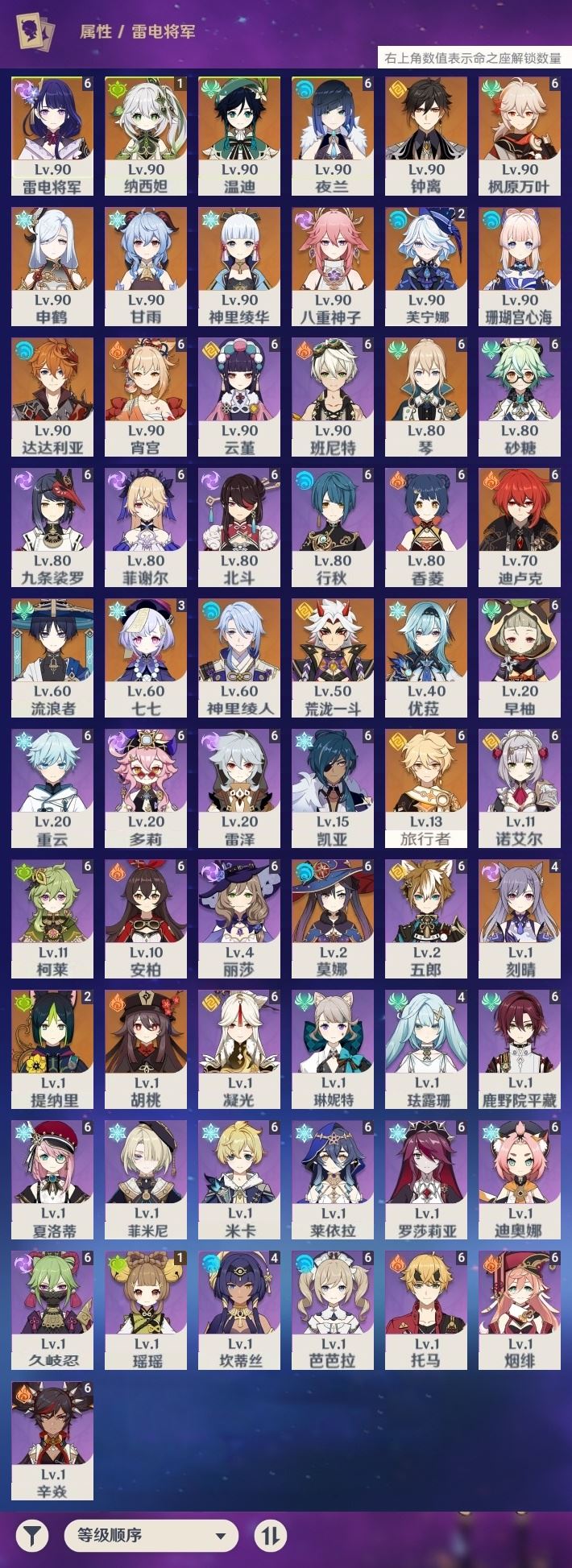 【终身找回包赔】【IQOMNHFD2】59级,140黄,男主,25个五星角色:满命雷电将军,满命夜兰,满命枫原万叶,满命宵宫,满命琴,满命迪卢克,满命莫娜,4命刻晴,3命七七,2命芙宁娜,2命提纳里,