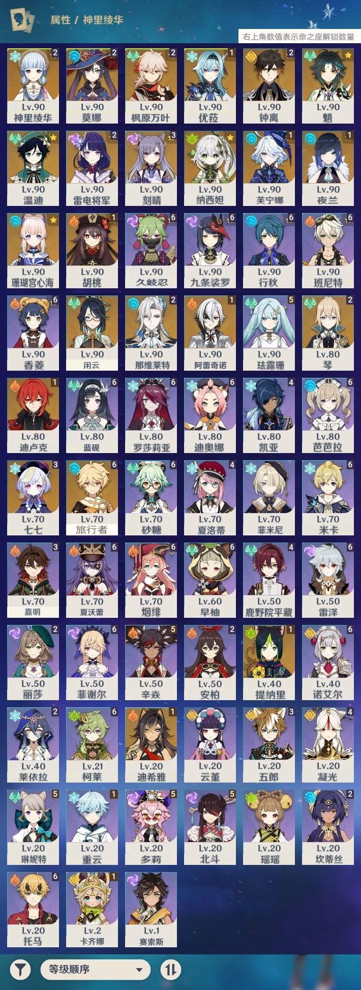 【终身找回包赔】【IQOMNGFDG】60级,69黄,男主,22个五星角色:3命刻晴,3命七七,2命神里绫华,2命莫娜,2命枫原万叶,2命钟离,2命雷电将军,2命那维莱特,2命琴,1命优菈,1命芙宁娜