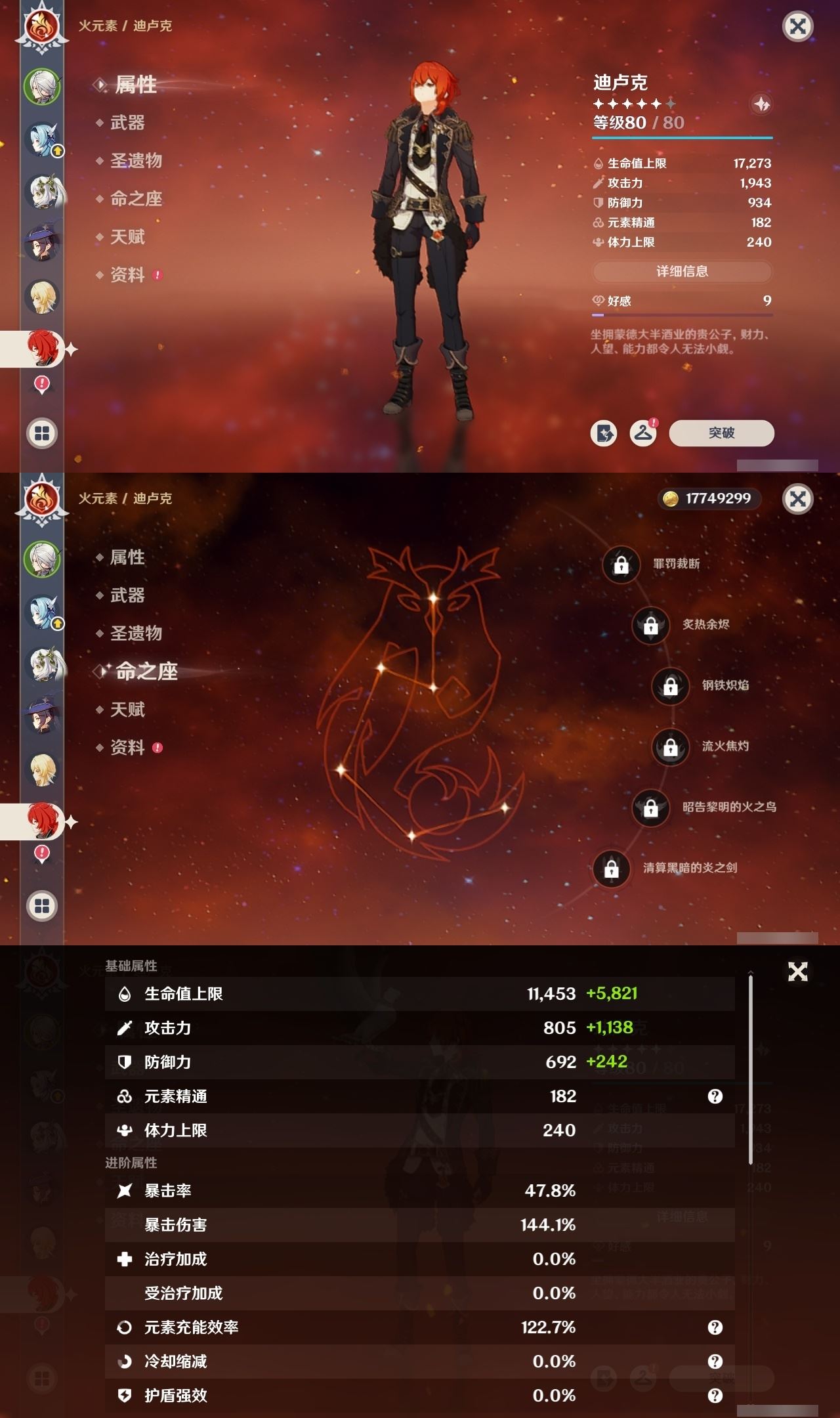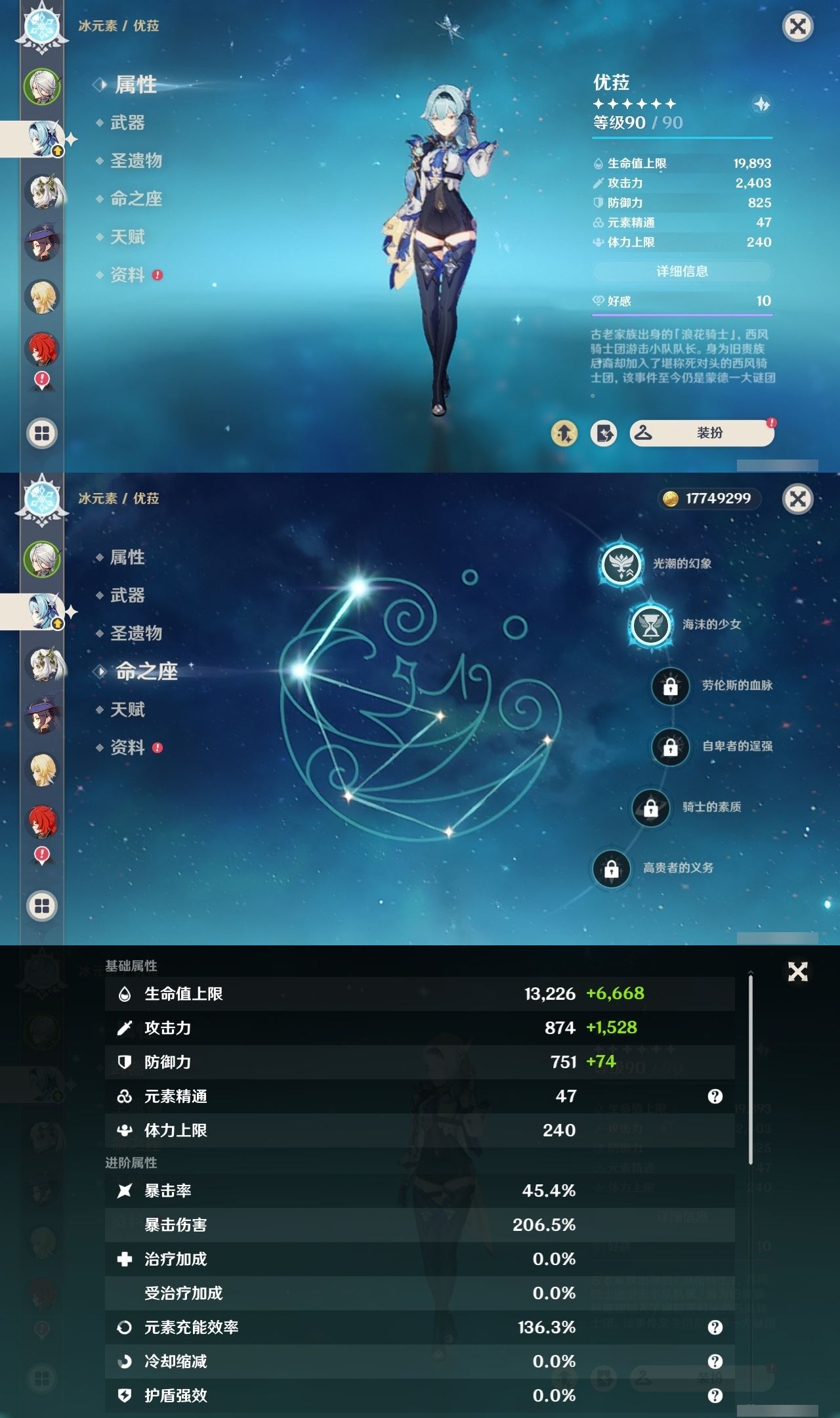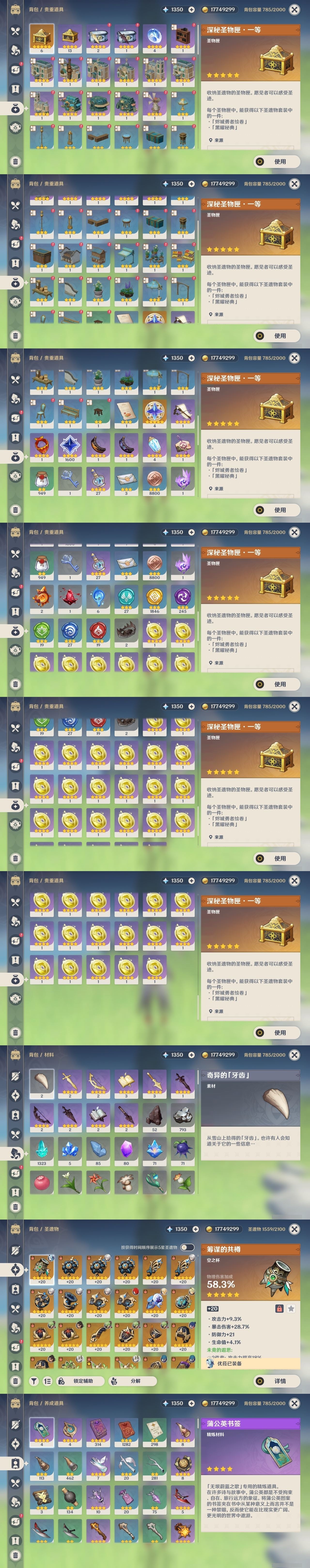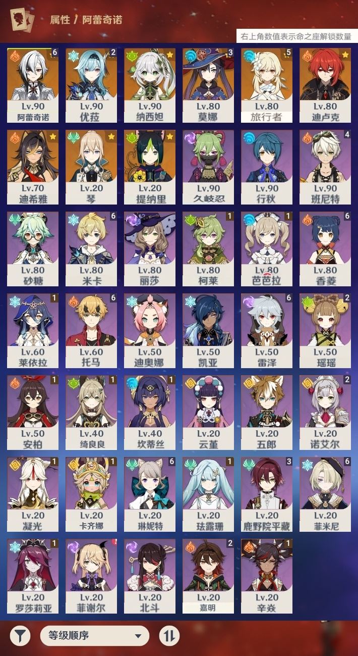 【终身找回包赔】【IXQMWCB1G】57级,22黄,女主,8个五星角色:满命阿蕾奇诺,3命莫娜,2命优菈,纳西妲,迪卢克,迪希雅,琴,提纳里,3个五星武器:精1赤月之形,精1天空之卷,精1狼的末路,