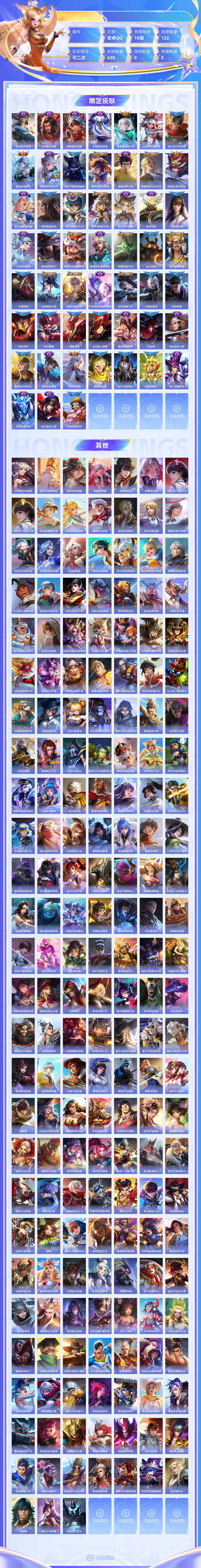 【终身找回包赔】【6TTX5DGEH】无双2典藏5星元4传说48史诗137限定157英雄122皮肤430稀有英雄1贵族10级皮肤价值:421410 【无双皮肤2】李白碎月剑心妲己青丘九尾 【荣耀典藏5