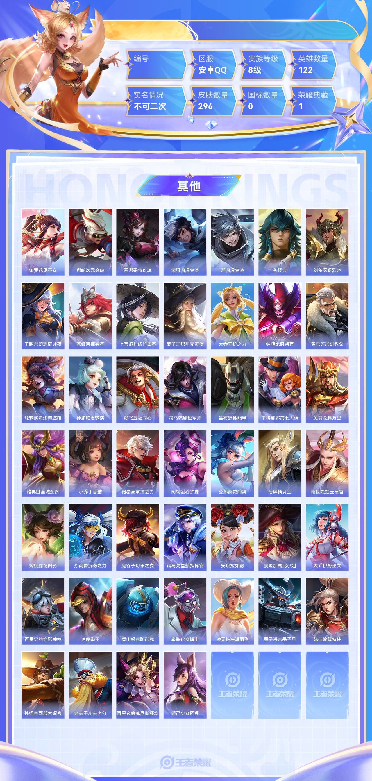【终身找回包赔】【6TTX51CEH】珍品传说1无双1典藏1传说19史诗79限定99英雄122皮肤296贵族8级皮肤价值:216112 【珍品传说1】马可波罗怪盗基德 【无双皮肤1】李白碎月剑心 【荣