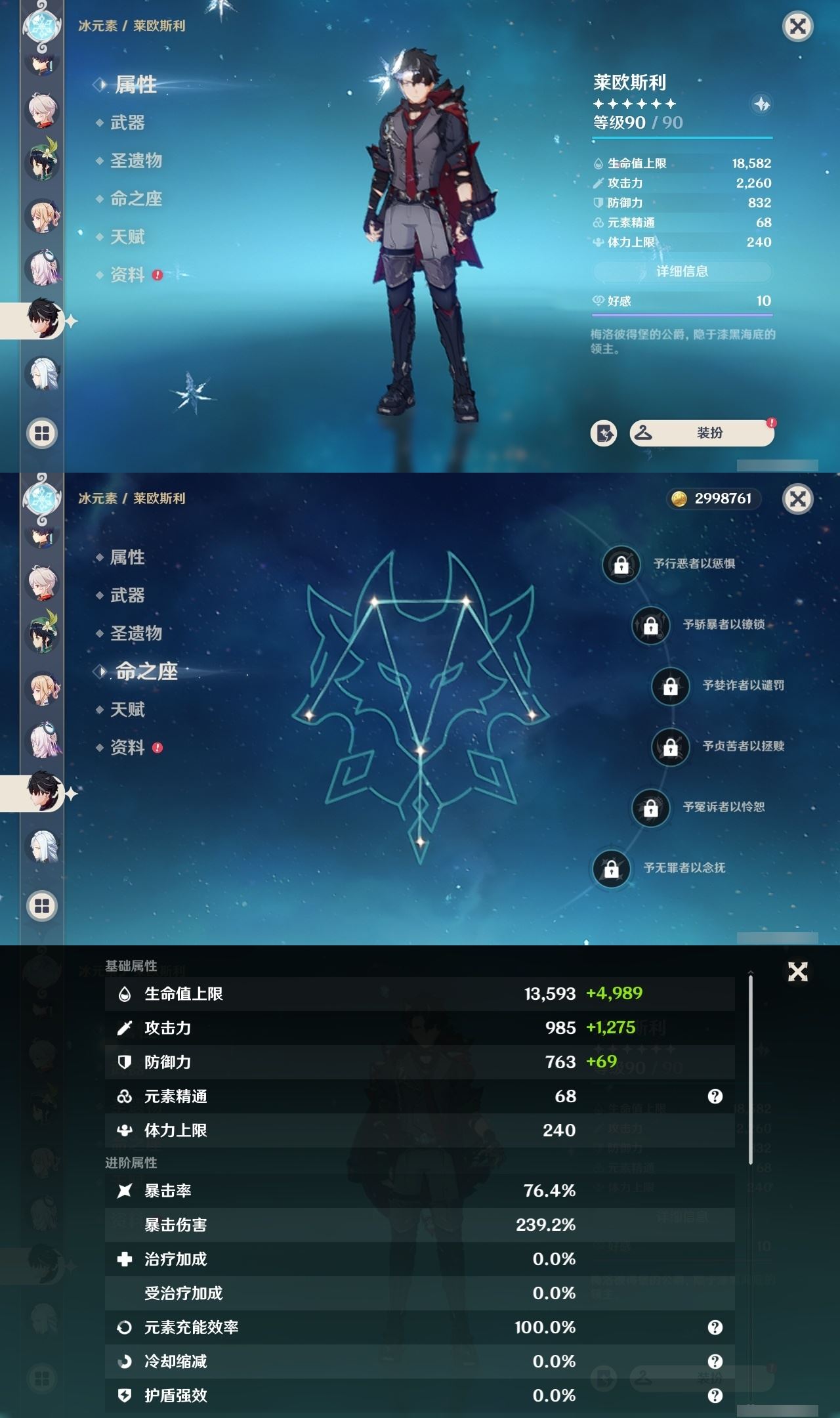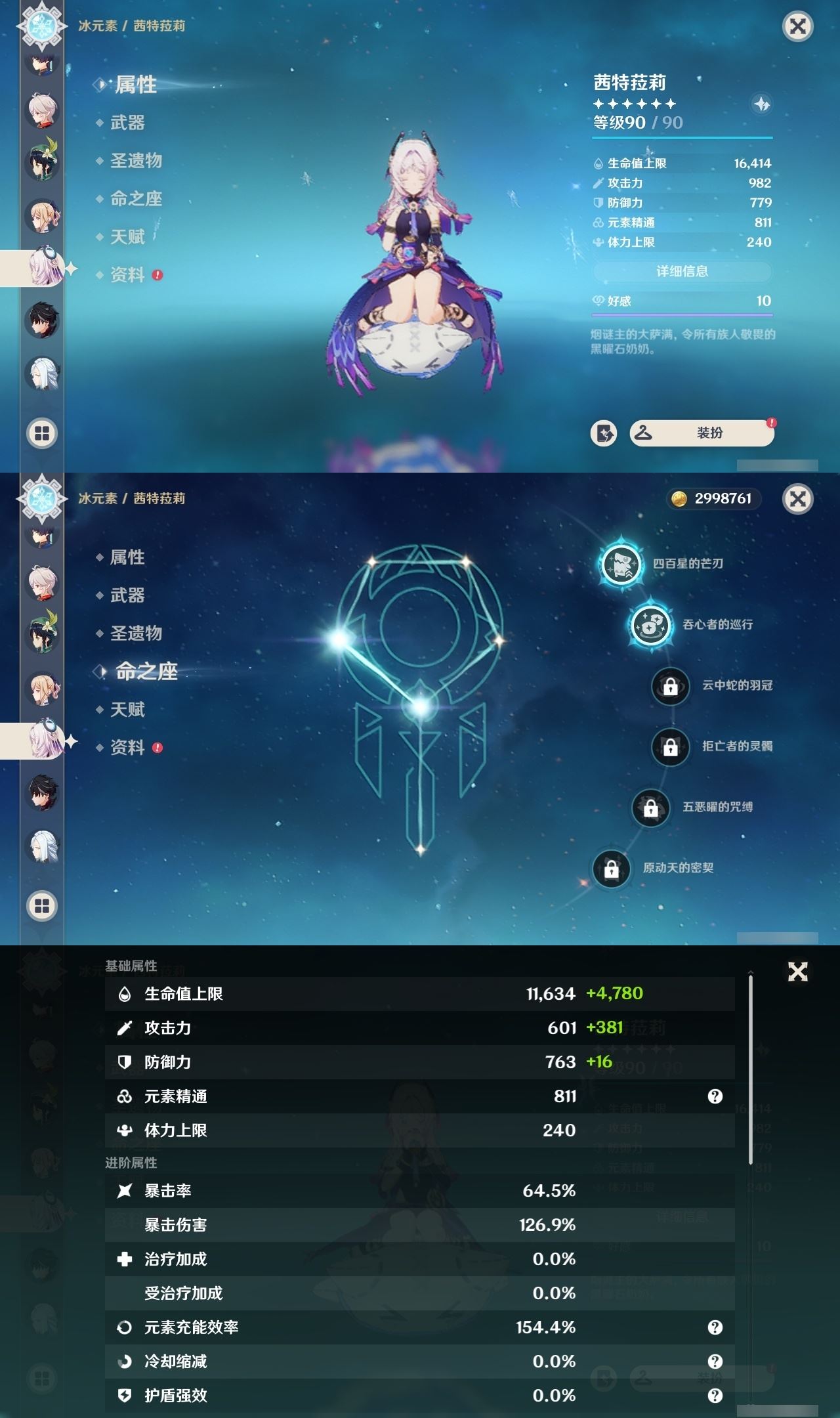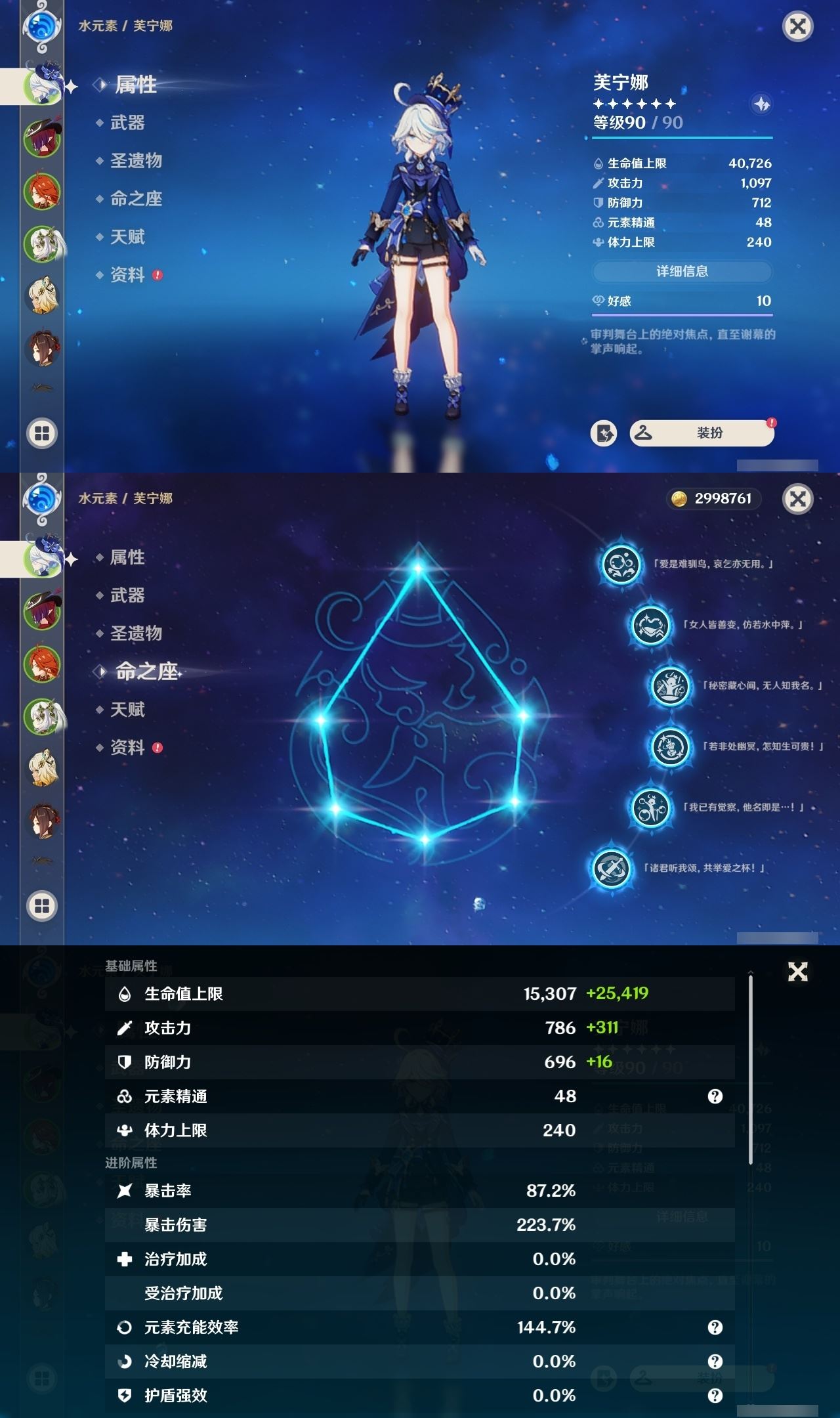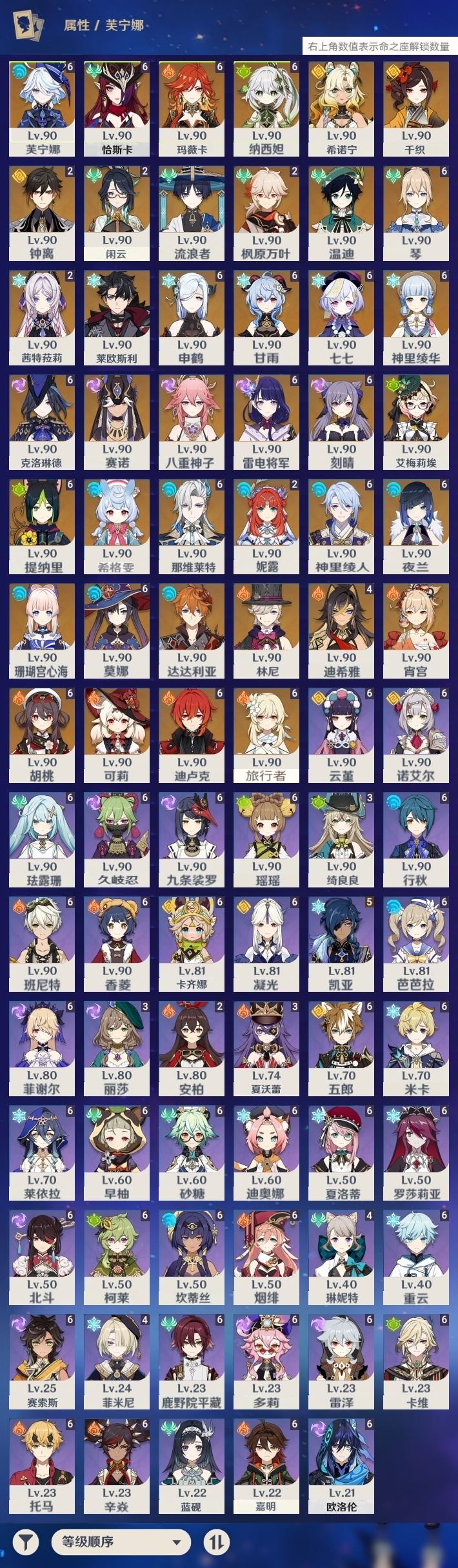 【终身找回包赔】【I0V4LFG2A】60级,275黄,女主,39个五星角色:满命芙宁娜,满命恰斯卡,满命玛薇卡,满命纳西妲,满命琴,满命申鹤,满命甘雨,满命七七,满命神里绫华,满命克洛琳德,满命雷电