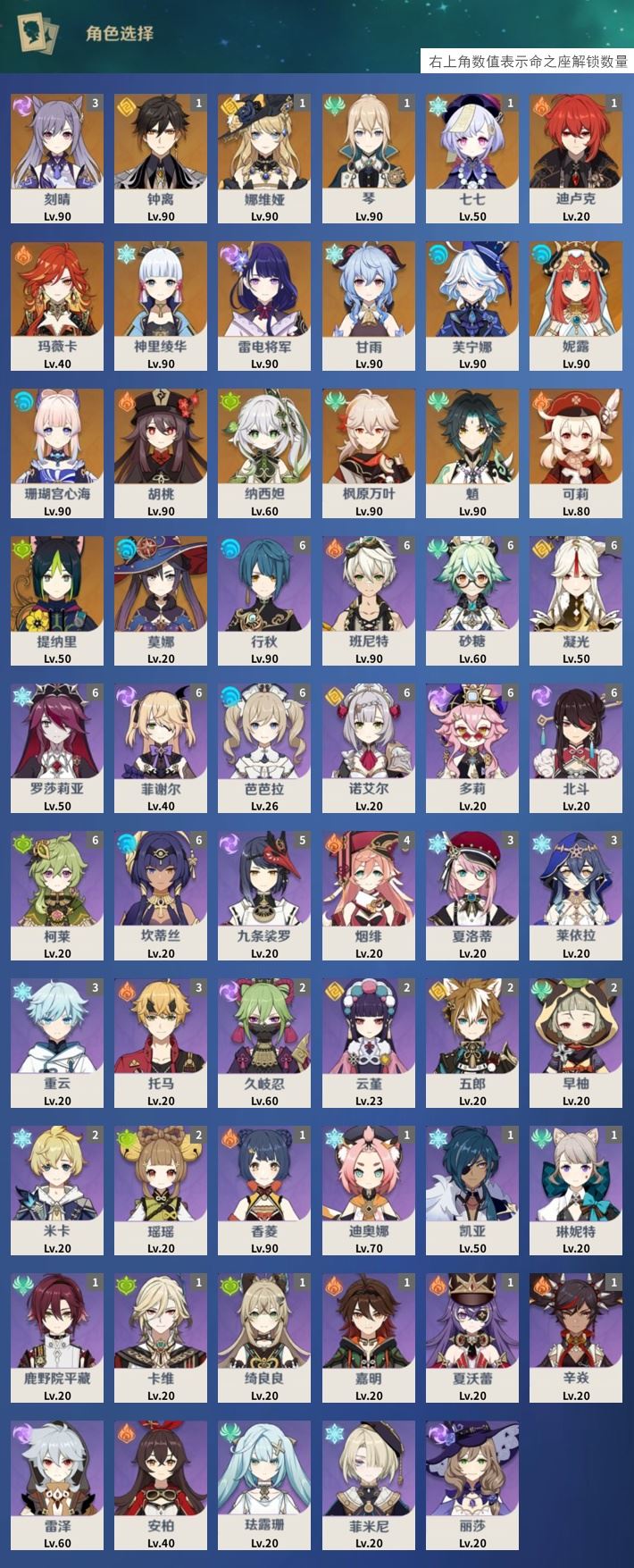 【终身找回包赔】【I0V4LH2DD】58级,39黄,女主,20个五星角色:3命刻晴,1命钟离,1命娜维娅,1命琴,1命七七,1命迪卢克,玛薇卡,神里绫华,雷电将军,甘雨,芙宁娜,妮露,珊瑚宫心海,胡