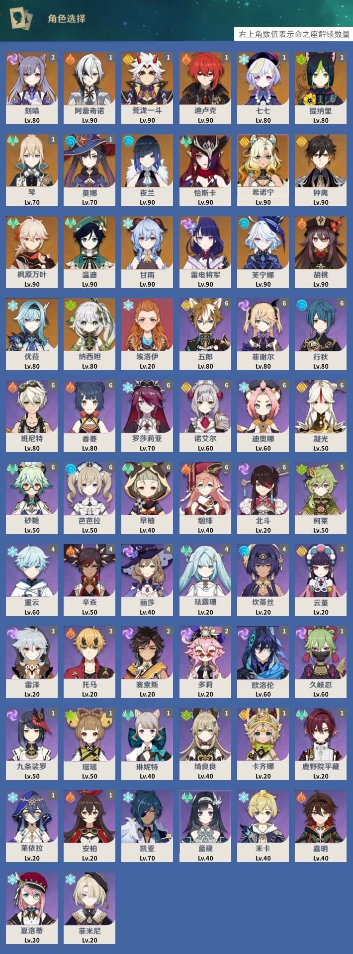 【终身找回包赔】【I0V4LDFDB】59级,42黄,女主,21个五星角色:2命刻晴,1命阿蕾奇诺,1命荒泷一斗,1命迪卢克,1命七七,1命提纳里,1命琴,1命莫娜,夜兰,恰斯卡,希诺宁,钟离,枫原万