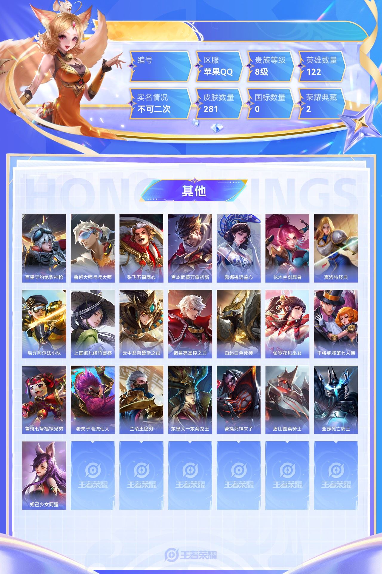 【终身找回包赔】【6TRUNAEBD】典藏2传说27史诗89限定92英雄122皮肤281稀有英雄9贵族8级皮肤价值:247836 【荣耀典藏2】瑶拾光映像花木兰九霄神辉 【传说皮肤27】司空震愿照山河
