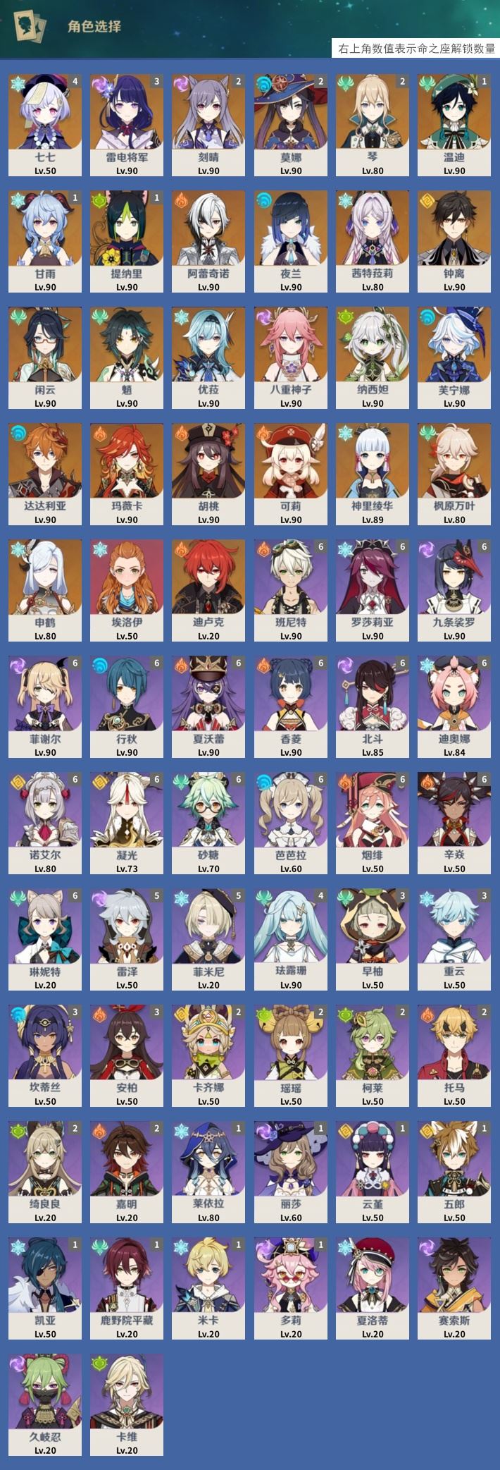 【终身找回包赔】【I698NECCG】60级,54黄,女主,27个五星角色:4命七七,3命雷电将军,2命刻晴,2命莫娜,2命琴,1命温迪,1命甘雨,1命提纳里,阿蕾奇诺,夜兰,茜特菈莉,钟离,闲云,魈