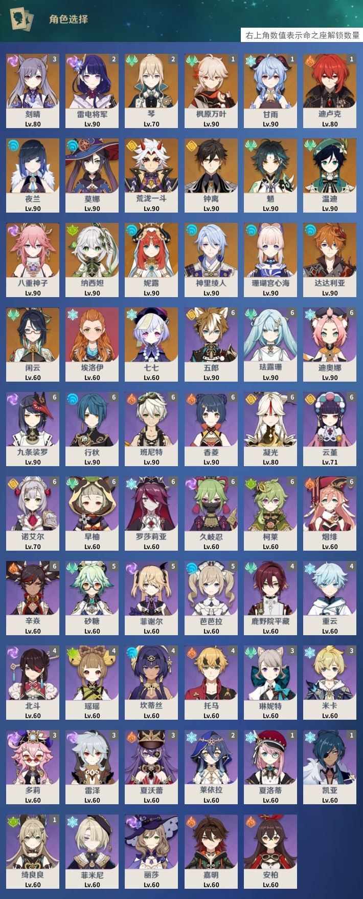 【终身找回包赔】【I698NAGA1】60级,49黄,女主,21个五星角色:3命刻晴,2命雷电将军,2命琴,1命枫原万叶,1命甘雨,1命迪卢克,夜兰,莫娜,荒泷一斗,钟离,魈,温迪,八重神子,纳西妲,