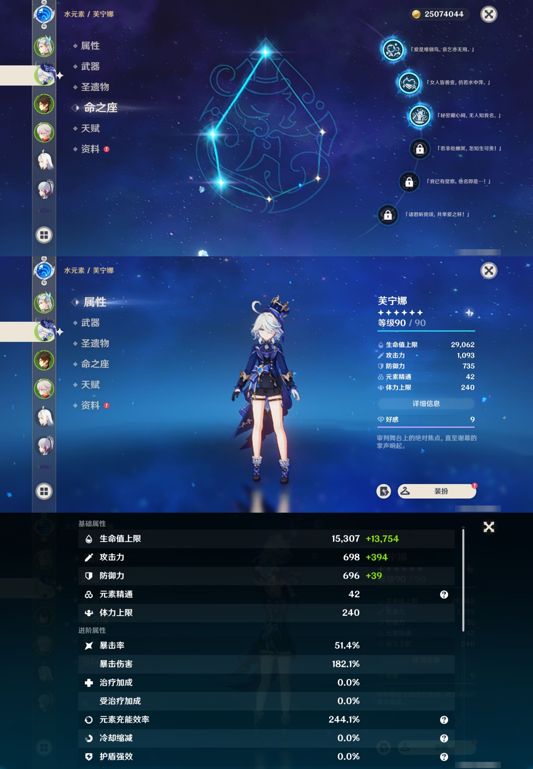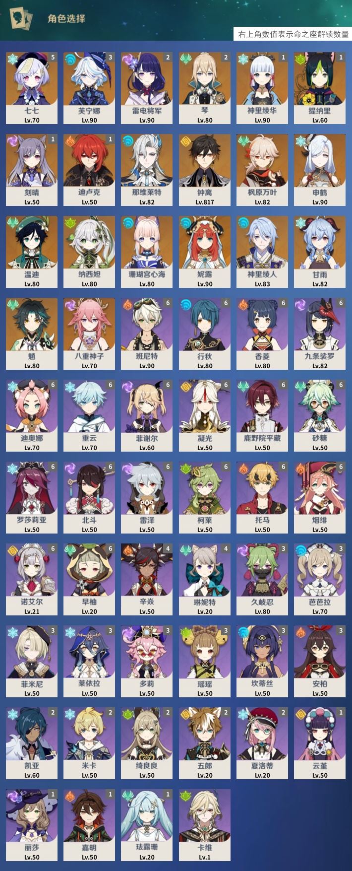 【终身找回包赔】【I698NC1AA】59级,43黄,女主,20个五星角色:5命七七,3命芙宁娜,2命雷电将军,2命琴,1命神里绫华,1命提纳里,1命刻晴,1命迪卢克,那维莱特,钟离,枫原万叶,申鹤,