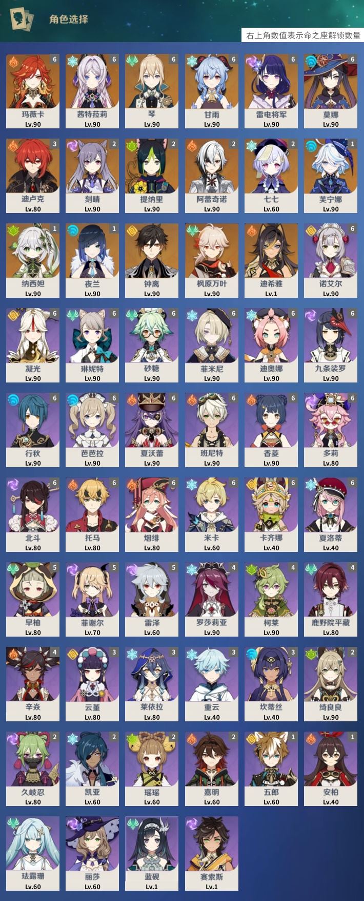 【终身找回包赔】【I698NBHGH】60级,85黄,女主,17个五星角色:满命玛薇卡,满命茜特菈莉,满命琴,满命甘雨,满命雷电将军,满命莫娜,3命迪卢克,2命刻晴,2命提纳里,2命阿蕾奇诺,2命七七