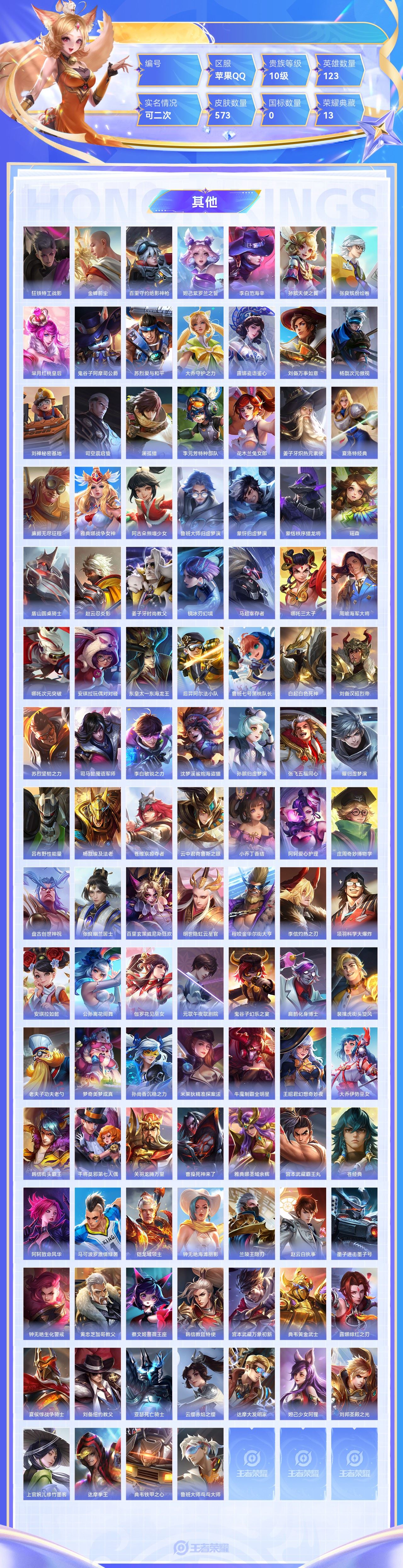 【终身找回包赔】【6XN9NB1G2】无双5典藏13星元12传说100史诗202限定246英雄123皮肤573稀有英雄10贵族10级皮肤价值:737886 【无双皮肤5】小乔时之魔女李白碎月剑心瑶真我