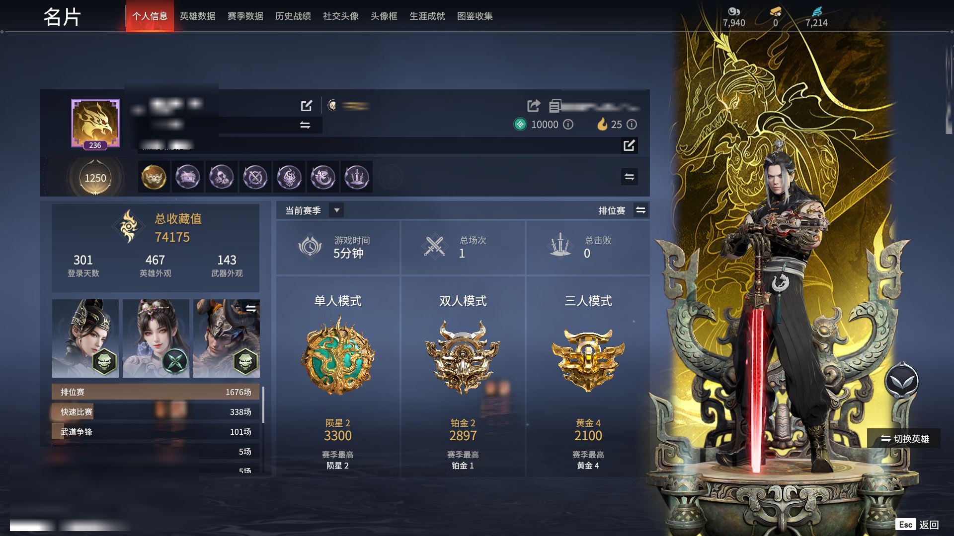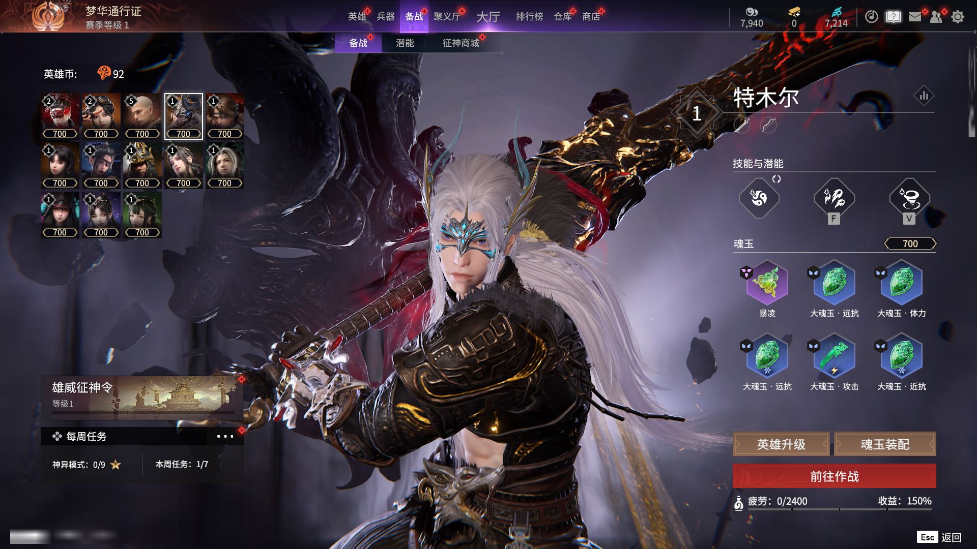 【终身找回包赔】【II7PPD2FA】4红123金|等级236|黄金2100|幻丝7214|金砖0|通行证Lv.1红色神品:戎金狼,少阳剑,狼主,锦鲤玉扇角色金色皮肤:西行劫·蜘蛛精,红川仙子,碧水青