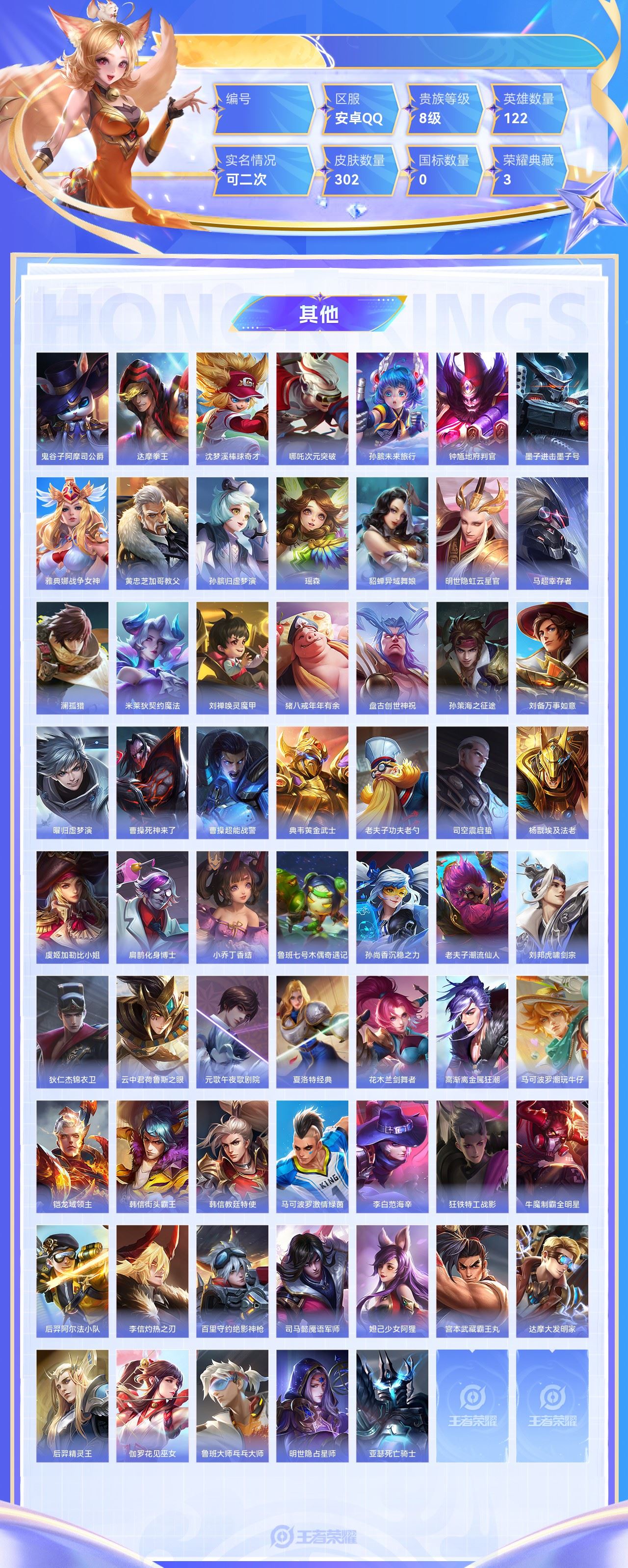 【终身找回包赔】【6Z4NRBHE2】珍品传说1无双1典藏3传说15史诗78限定83英雄122皮肤302稀有英雄9贵族8级皮肤价值:243972 【珍品传说1】孙策时之奇旅 【无双皮肤1】李白碎月剑心