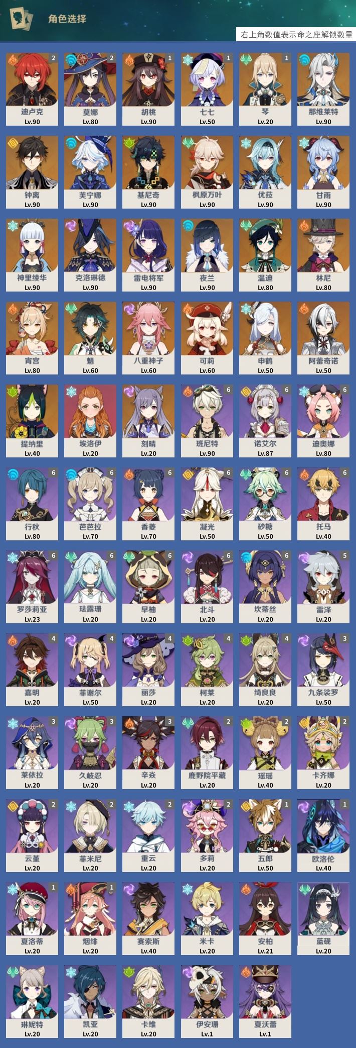 【终身找回包赔】【IYZ642GDD】60级,51黄,女主,27个五星角色:2命迪卢克,2命莫娜,1命胡桃,1命七七,1命琴,那维莱特,钟离,芙宁娜,基尼奇,枫原万叶,优菈,甘雨,神里绫华,克洛琳德,