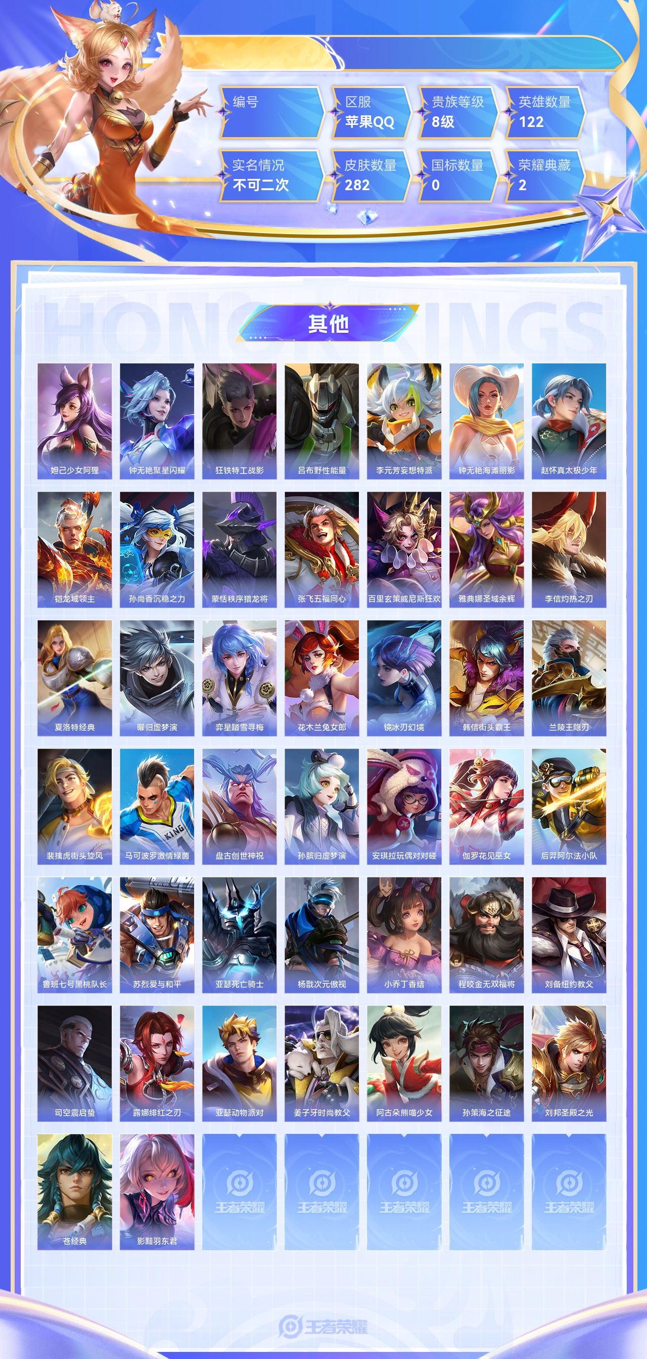 【终身找回包赔】【6WS8XHDDF】珍品传说2无双1典藏2传说17史诗85限定87英雄122皮肤282稀有英雄9贵族8级皮肤价值:228696 【珍品传说2】鲁班七号江户川柯南马可波罗怪盗基德 【无