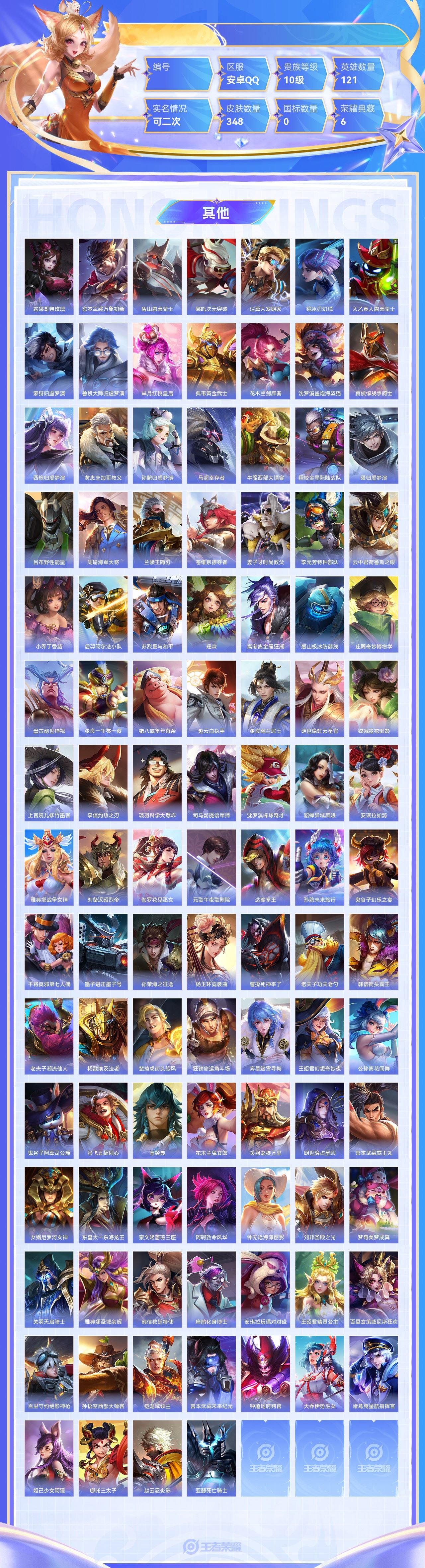 【终身找回包赔】【6WS8XAGHH】典藏6传说34史诗108限定114英雄121皮肤348稀有英雄9贵族10级皮肤价值:371554 【荣耀典藏6】诸葛亮星域神启芈月大秦宣太后李白鸣剑曳影夏侯惇无限