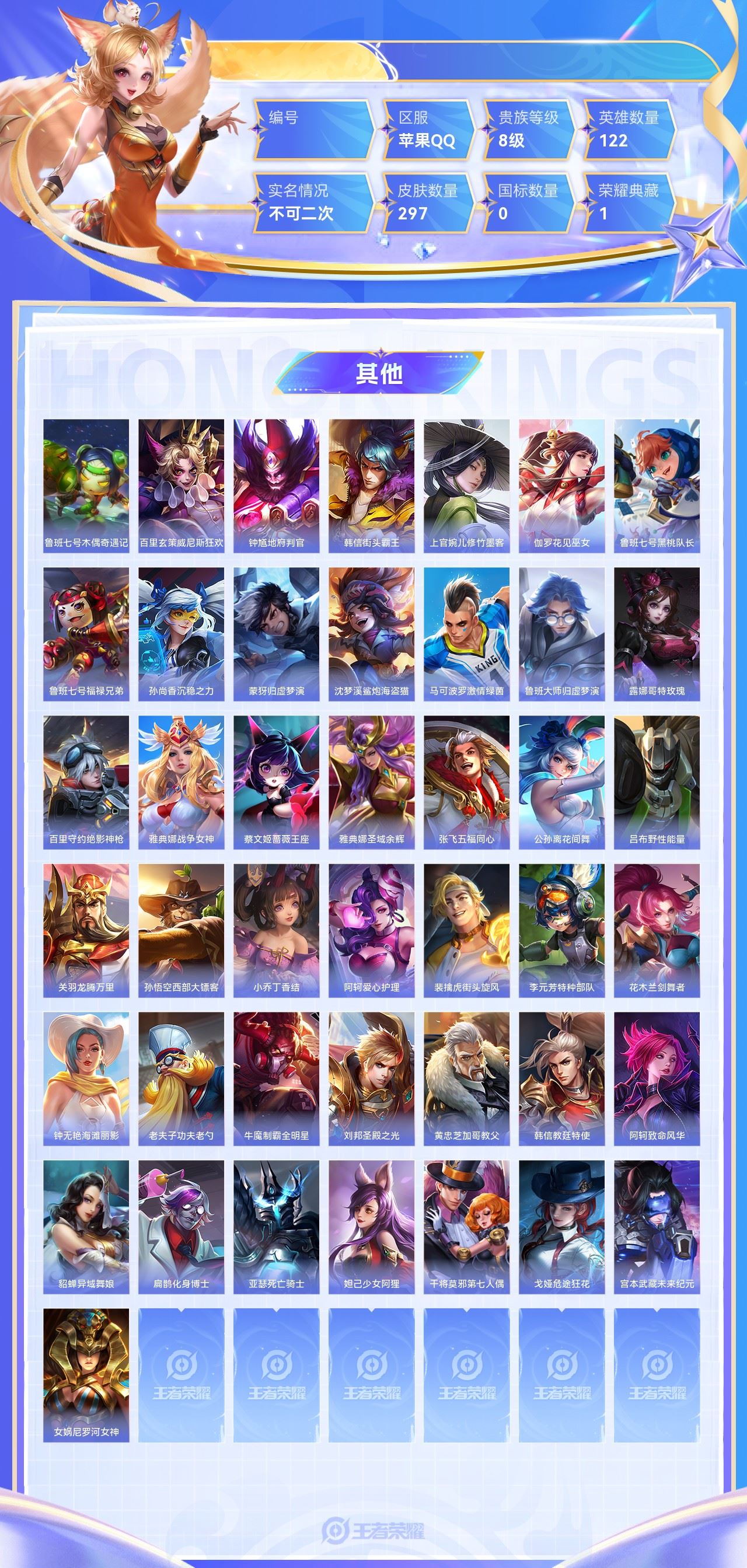 【终身找回包赔】【6Z4NR1BE2】【连体和平精英6粉装5特效枪】珍品传说1典藏1传说12史诗89限定105英雄122皮肤297稀有英雄9贵族8级皮肤价值:212102【珍品传说1】孙策时之奇旅【荣