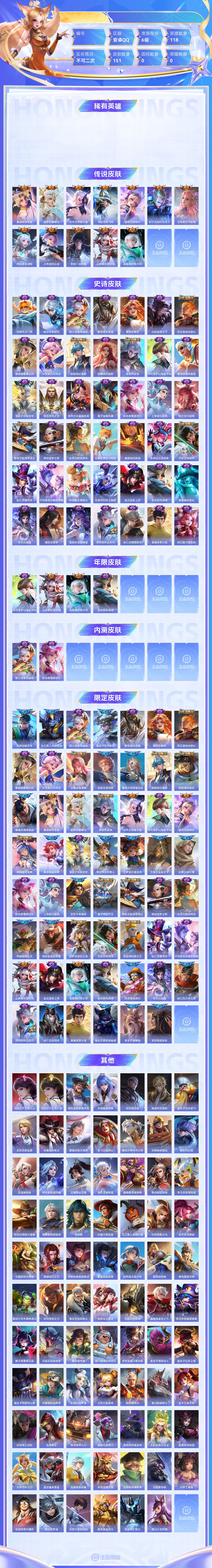 【终身找回包赔】【6SKJO2GCA】传说12史诗42限定55英雄118皮肤151稀有英雄8贵族6级皮肤价值:100618 【传说皮肤12】夏洛特浮生妄伽罗炽翼辉光花木兰燃星之曲马超无双飞将虞姬无限倾