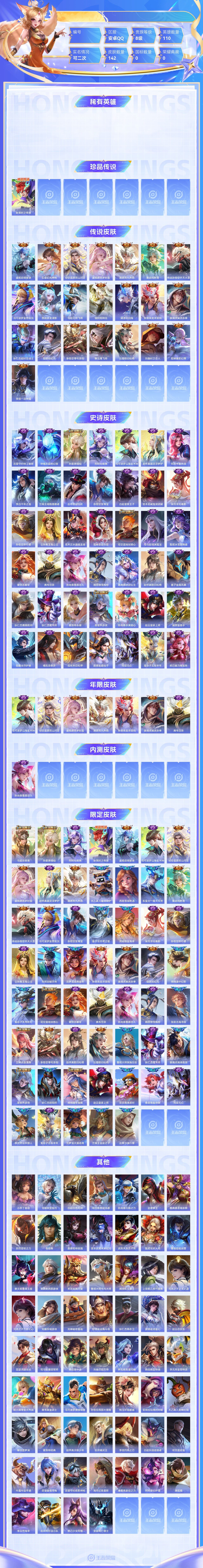 【终身找回包赔】【6ZUIIB2CA】珍品传说1传说22史诗42限定54英雄110皮肤142稀有英雄8贵族8级皮肤价值:110808 【珍品传说1】孙策时之奇旅 【传说皮肤22】虞姬启明星使云缨幻光神