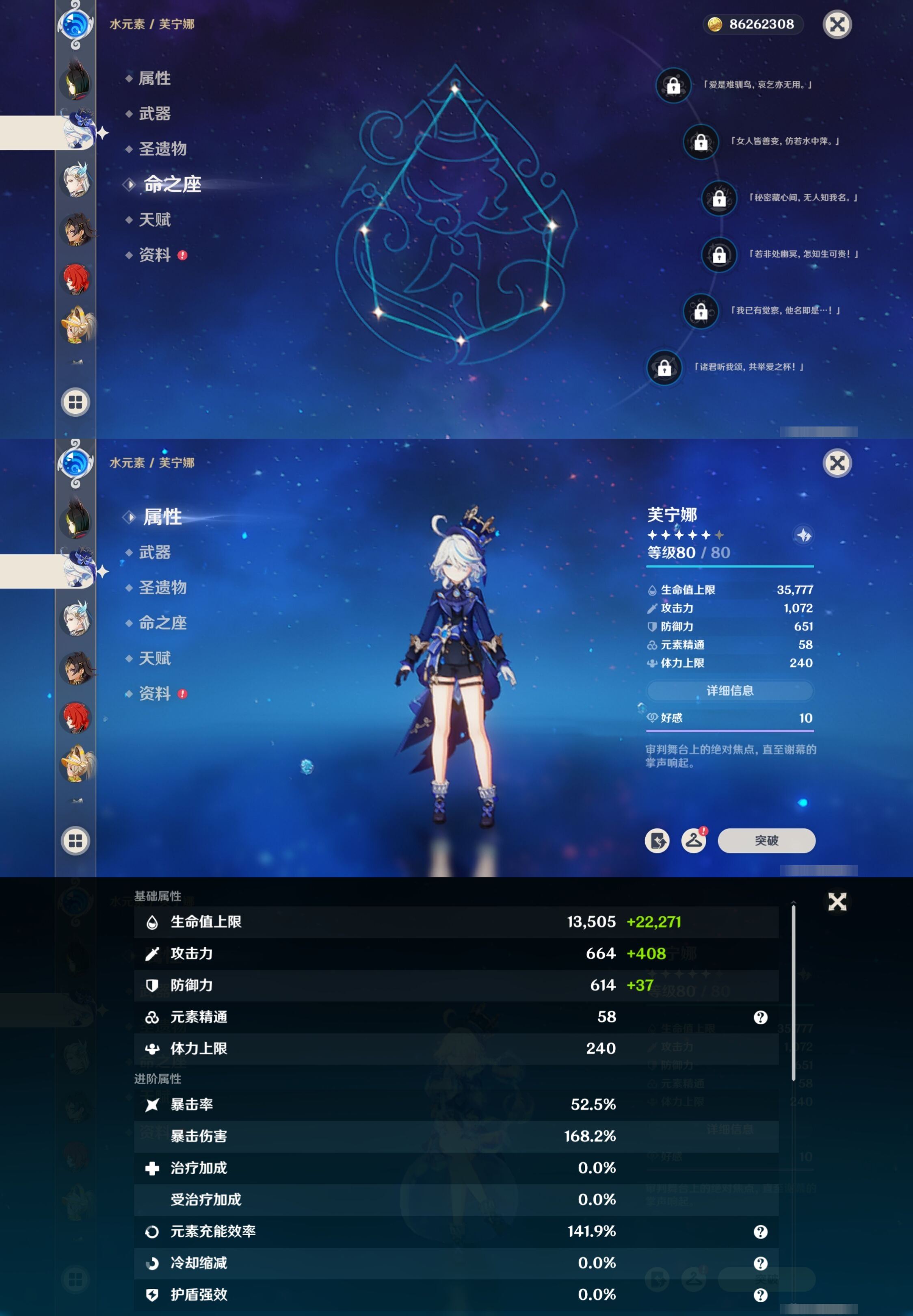 【终身找回包赔】【I0RQW1BAD】45级,28黄,女主,9个五星角色:满命流浪者,满命那维莱特,2命琴,2命提纳里,七七,刻晴,芙宁娜,迪希雅,迪卢克,3个五星武器:精1阿莫斯之弓,精1天空之刃,