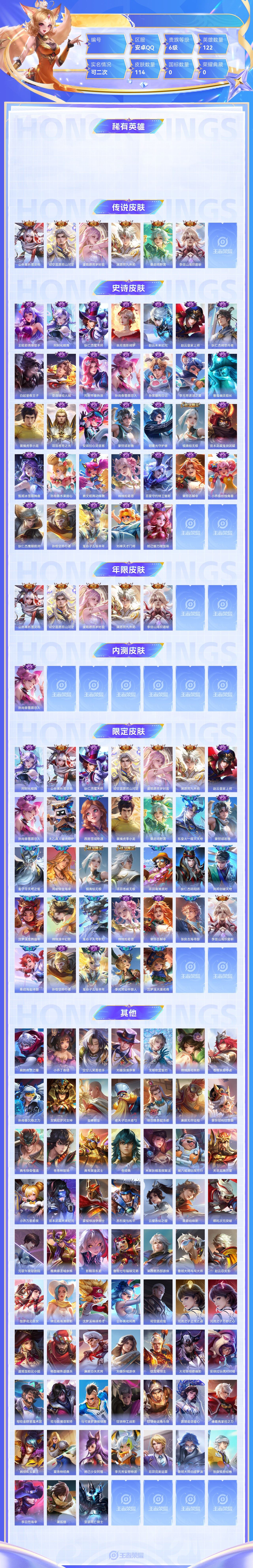 【终身找回包赔】【6OU7WA1BH】传说6史诗33限定33英雄122皮肤114稀有英雄9贵族6级皮肤价值:83916 【传说皮肤6】公孙离祈雪灵祝司空震愿照山河定虞姬愿照岁时盈澜愿照九州拓桑启鸣野蒿