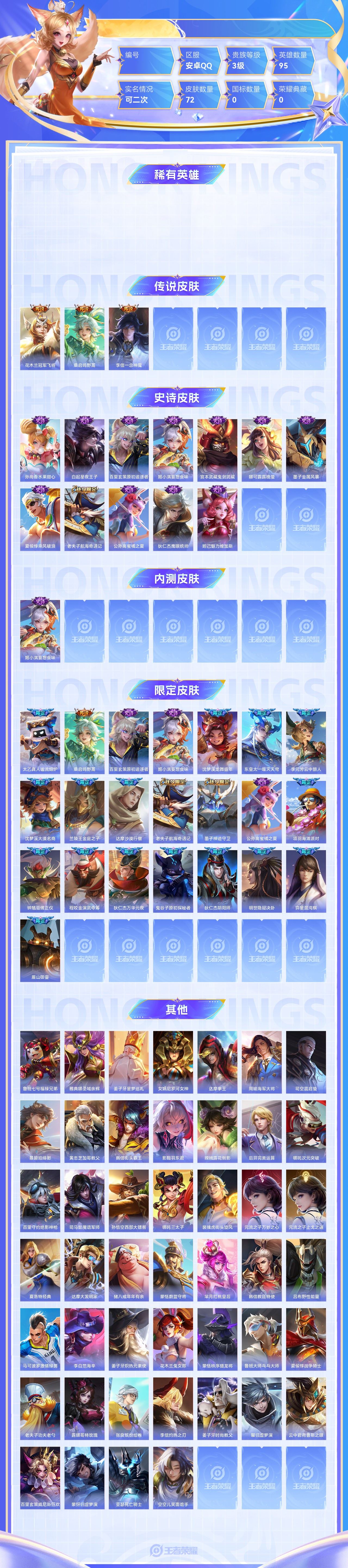 【终身找回包赔】【63PXSECG2】传说3史诗12限定22英雄95皮肤72稀有英雄6贵族3级皮肤价值:39528 【传说皮肤3】花木兰冠军飞将桑启鸣野蒿李信一念神魔 【史诗皮肤12】孙尚香水果甜心白