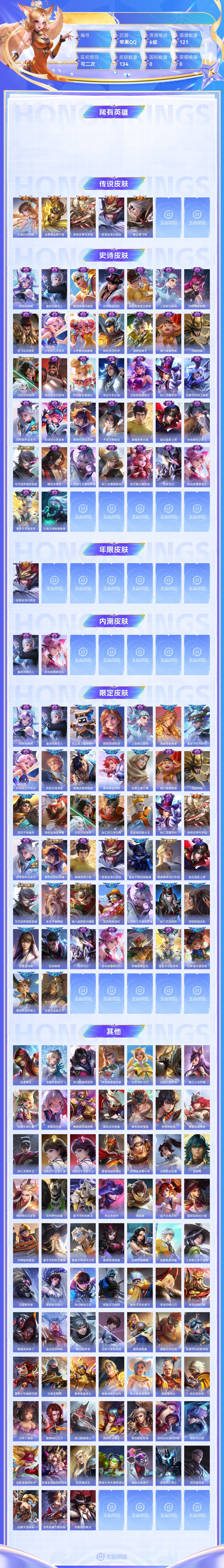 【终身找回包赔】【6N77JAAFD】传说5史诗37限定44英雄121皮肤134稀有英雄9贵族6级皮肤价值:83256 【传说皮肤5】云缨幻光神枪达摩黄金狮子座孙悟空零号赤焰百里玄策白虎志曜云鹰飞将