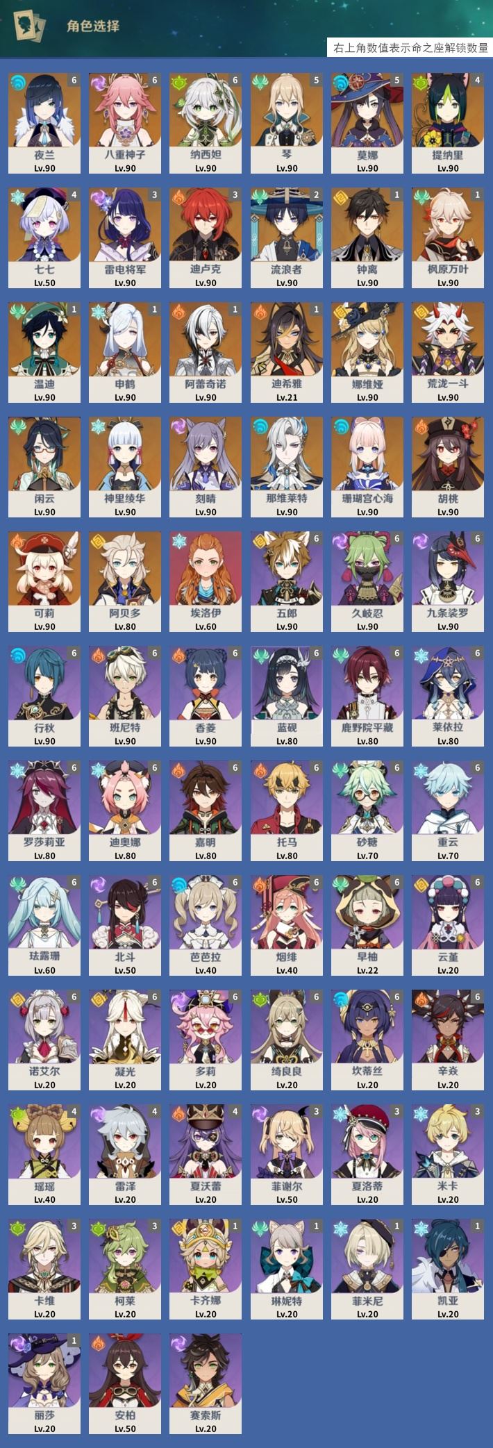 【终身找回包赔】【I0V4LAEDB】60级,111黄,女主,27个五星角色:满命夜兰,满命八重神子,满命纳西妲,5命琴,5命莫娜,4命提纳里,4命七七,3命雷电将军,3命迪卢克,2命流浪者,1命钟离