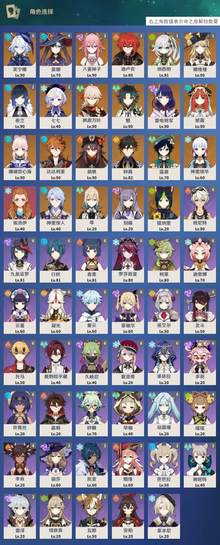 【终身找回包赔】【I4QYTEBG2】60级,55黄,女主,23个五星角色:满命芙宁娜,4命莫娜,2命八重神子,2命迪卢克,1命纳西妲,1命娜维娅,1命夜兰,1命七七,枫原万叶,魈,雷电将军,妮露,珊