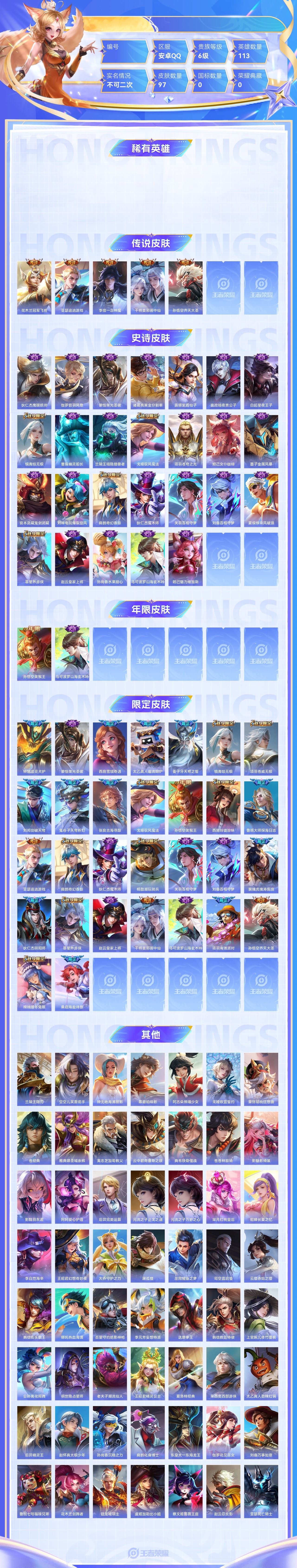 【终身找回包赔】【5级铭文数量0 召唤师等级0 白银Ⅰ 贵族V0】【终身找回包赔】【68L5TCCEH】传说5史诗26限定30英雄113皮肤97稀有英雄6贵族6级皮肤价值:61400 【传说皮肤5】花木兰冠军飞将亚瑟追逃游戏李信一念神魔干将莫邪画中仙孙悟空齐天大圣