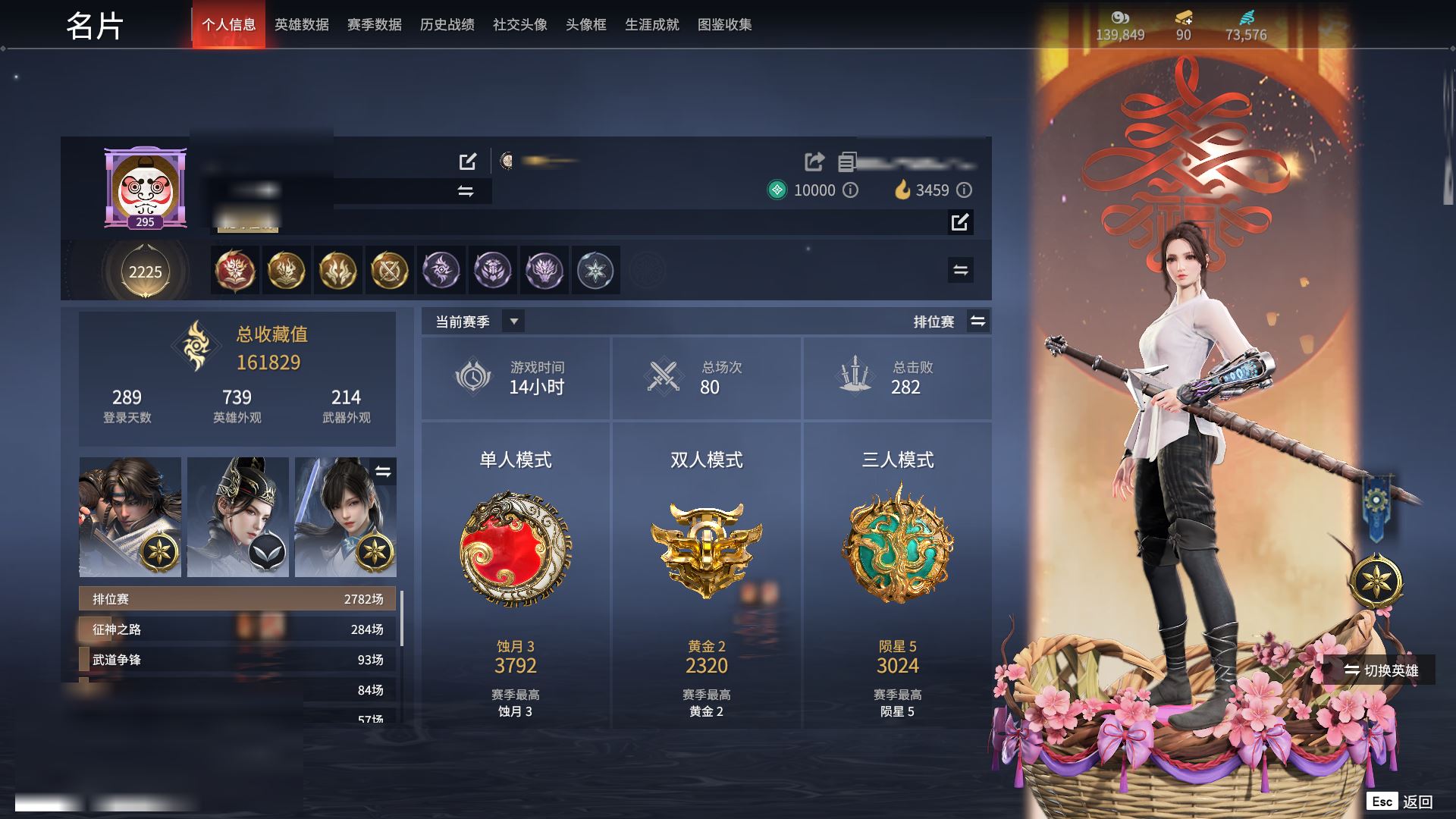 【终身找回包赔】【II7PPAAAB】10红197金|等级295|陨星3024|幻丝73576|金砖90|通行证Lv.66红色神品:戎金狼,墨离,香雪水兰,绝代风华,天罚,毕方,灵狐幻刃,狼主,涯角,