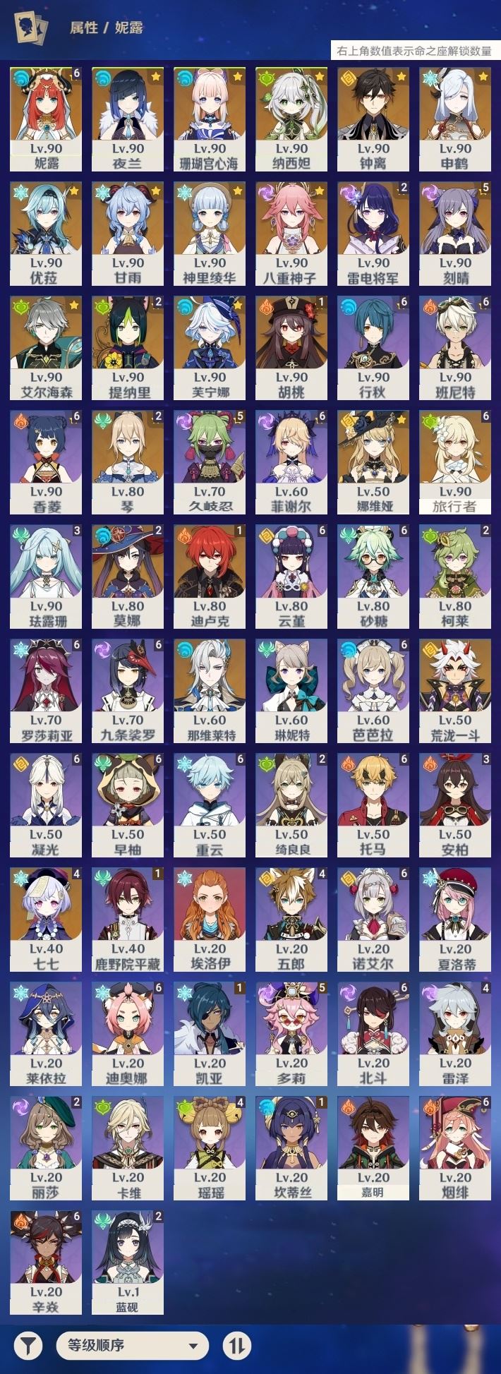 【终身找回包赔】【IZPRYFBAG】60级,69黄,女主,23个五星角色:满命妮露,5命刻晴,4命七七,2命雷电将军,2命提纳里,2命琴,2命莫娜,1命胡桃,1命迪卢克,夜兰,珊瑚宫心海,纳西妲,钟