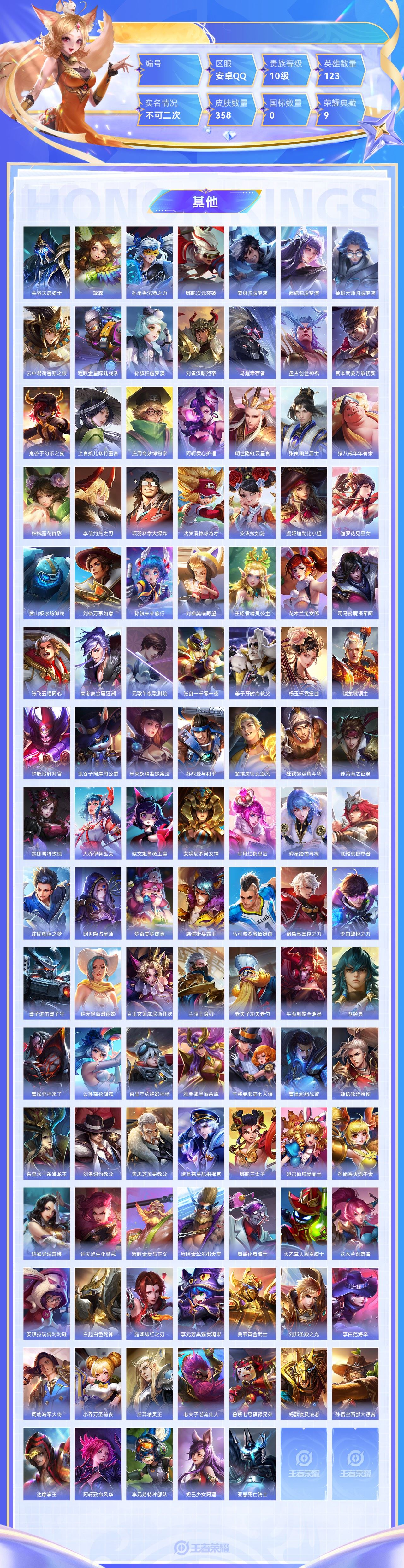 【终身找回包赔】【6XU55HGED】典藏9传说28史诗116限定107英雄123皮肤358稀有英雄10贵族10级皮肤价值:421158 【荣耀典藏9】李白鸣剑曳影程咬金活力突击芈月大秦宣太后武则天倪