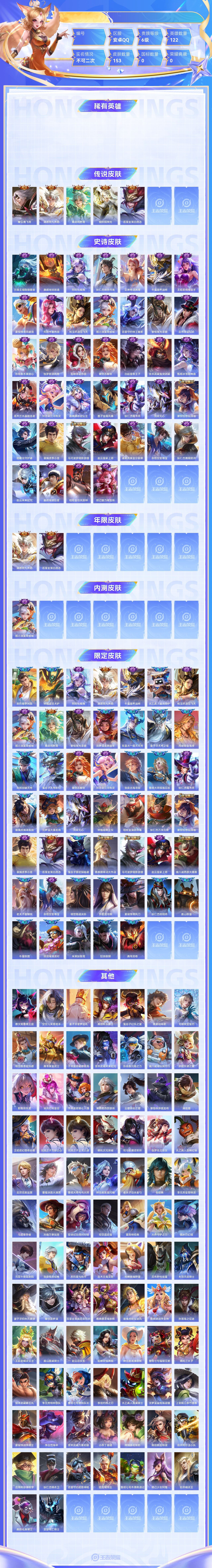 【终身找回包赔】【6JWW521CF】传说5史诗39限定47英雄122皮肤153稀有英雄9贵族6级皮肤价值:90228 【传说皮肤5】曜云鹰飞将澜愿照九州拓桑启鸣野蒿镜炽阳神光百里玄策白虎志 【史诗皮