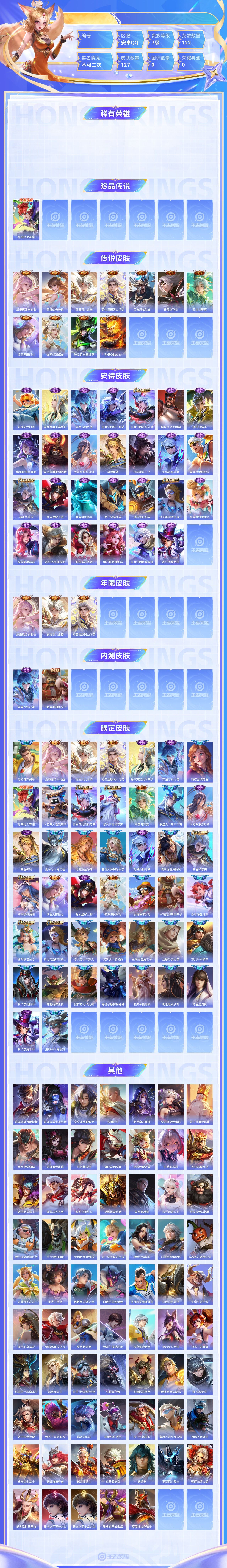 【终身找回包赔】【69OX6AD12】珍品传说1传说11史诗27限定44英雄122皮肤127稀有英雄9贵族7级皮肤价值:83780 【珍品传说1】孙策时之奇旅 【传说皮肤11】虞姬愿照岁时盈云缨幻光神
