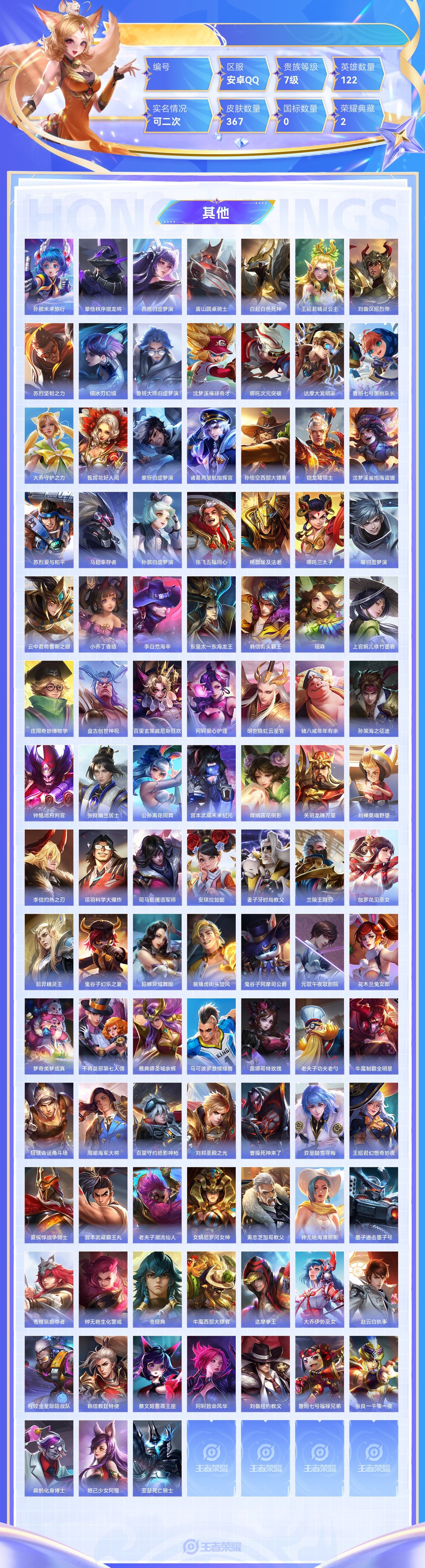 【终身找回包赔】【6J66JFDED】典藏2传说9史诗109限定109英雄122皮肤367稀有英雄9贵族7级皮肤价值:272428 【荣耀典藏2】关羽赤影疾锋鲁班七号星空梦想 【传说皮肤9】干将莫邪久