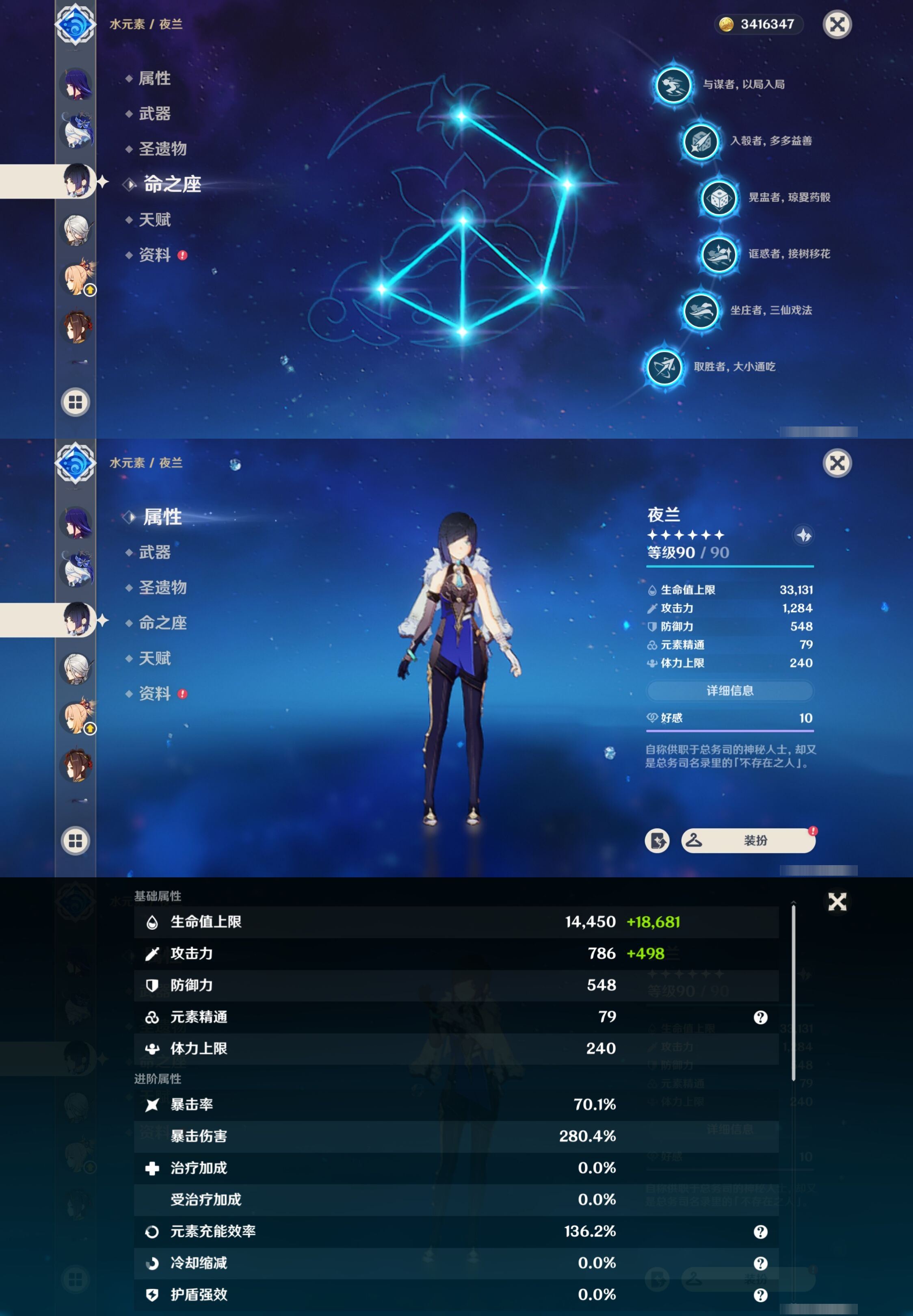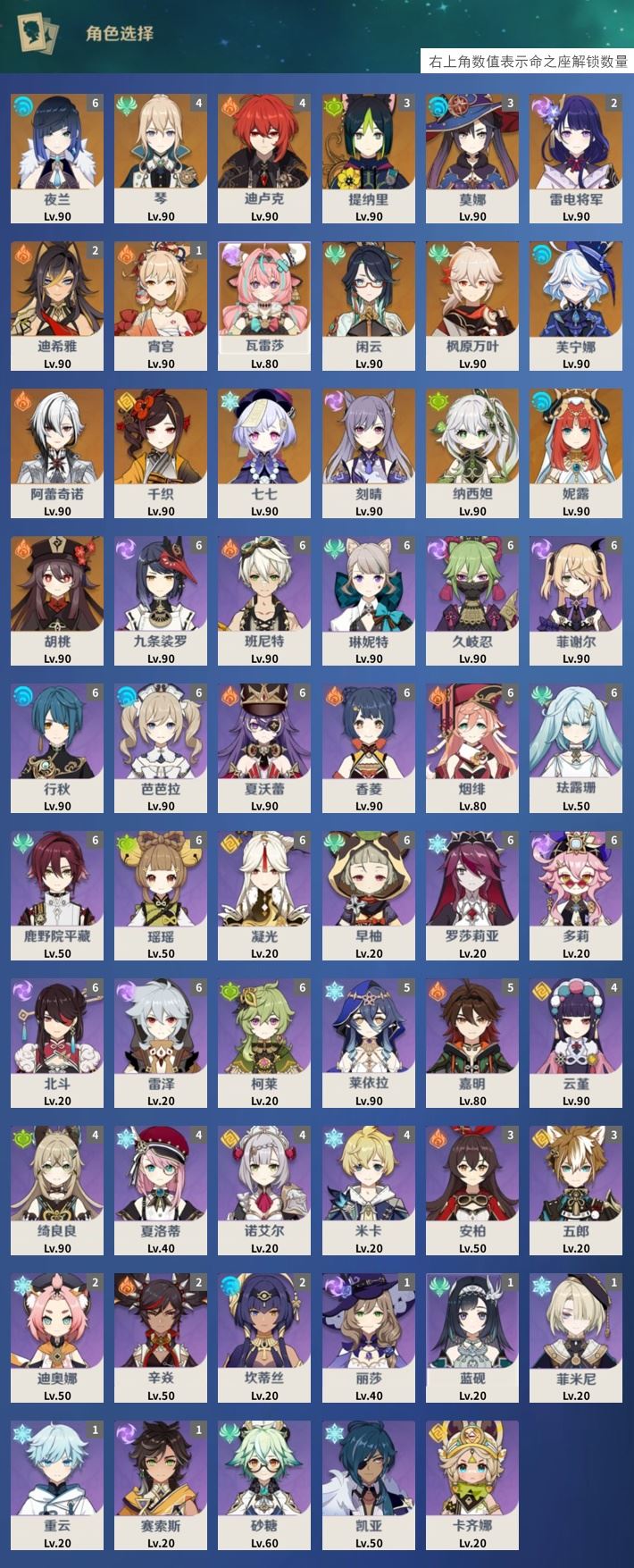 【终身找回包赔】【I5ZUI2HBE】60级,51黄,女主,19个五星角色:满命夜兰,4命琴,4命迪卢克,3命提纳里,3命莫娜,2命雷电将军,2命迪希雅,1命宵宫,瓦雷莎,闲云,枫原万叶,芙宁娜,阿蕾