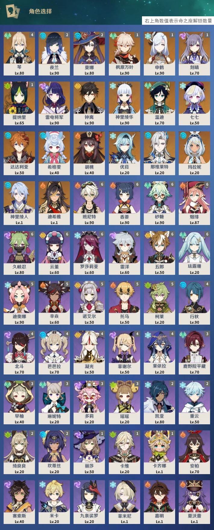 【终身找回包赔】【IXYPNCGCC】60级,39黄,女主,20个五星角色:4命琴,2命夜兰,2命莫娜,1命枫原万叶,1命申鹤,1命刻晴,1命提纳里,雷电将军,钟离,神里绫华,温迪,七七,达达利亚,希