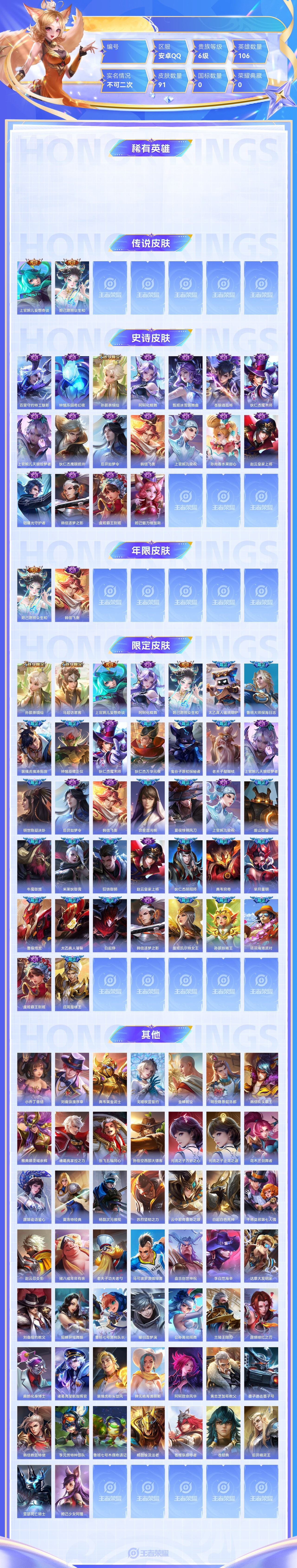 【终身找回包赔】【6J4XO12GC】传说2史诗18限定37英雄106皮肤91稀有英雄8贵族6级皮肤价值:50602 【传说皮肤2】上官婉儿妄想奇谈妲己愿照众生和 【史诗皮肤18】百里守约特工魅影钟馗