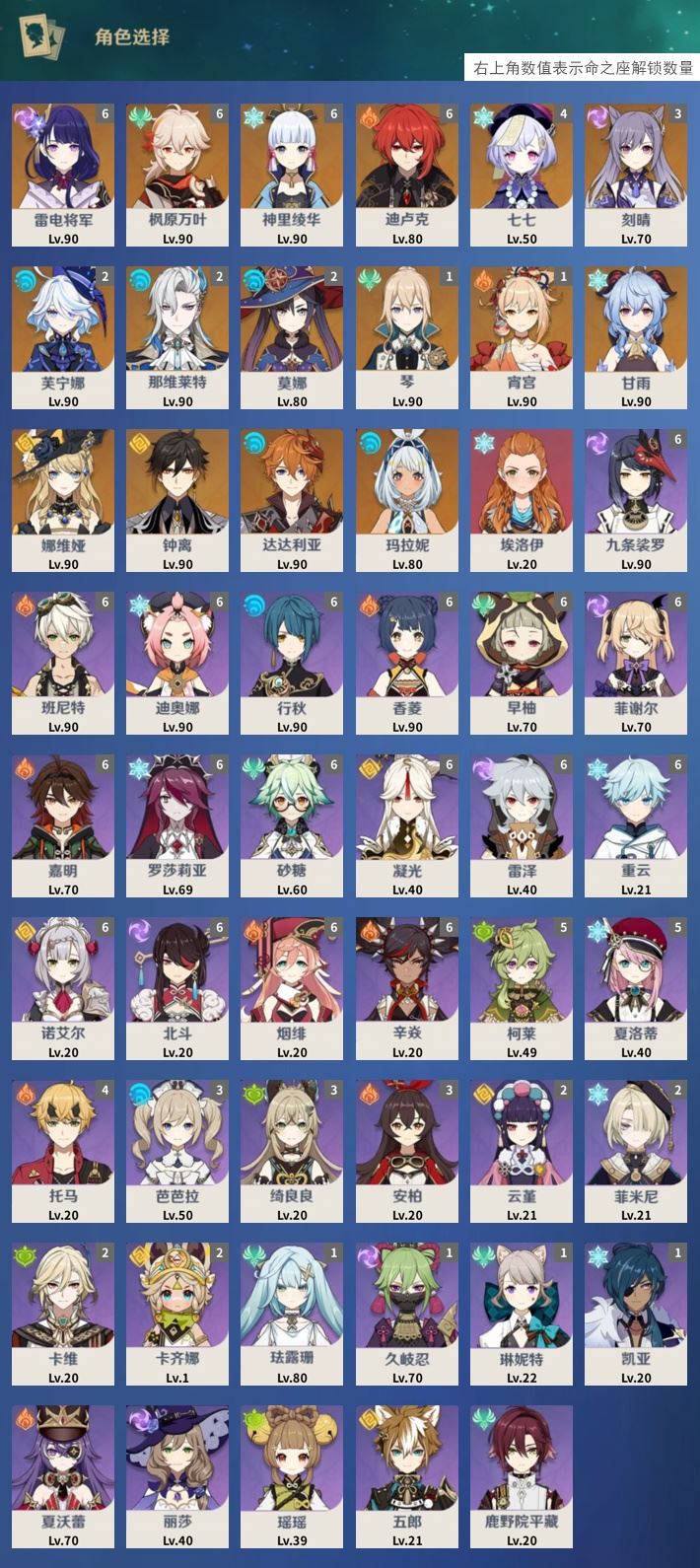 【终身找回包赔】【IXYPNA1D2】59级,82黄,女主,17个五星角色:满命雷电将军,满命枫原万叶,满命神里绫华,满命迪卢克,4命七七,3命刻晴,2命芙宁娜,2命那维莱特,2命莫娜,1命琴,1命宵