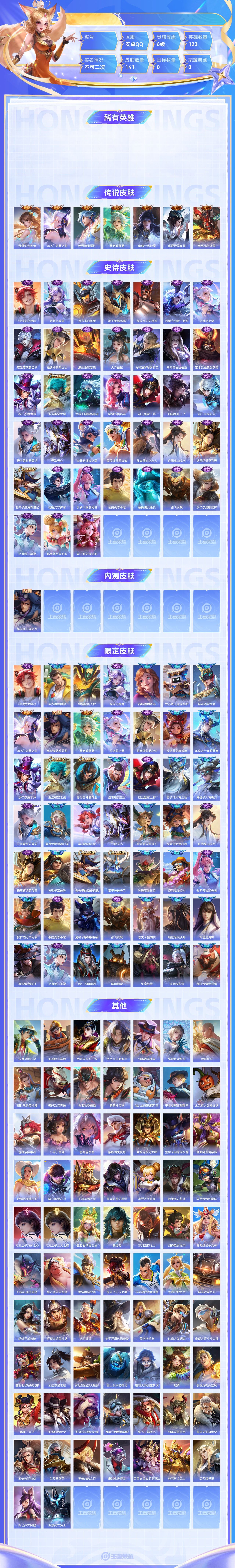 【终身找回包赔】【6J4XOCEGA】传说7史诗38限定49英雄123皮肤141稀有英雄9贵族6级皮肤价值:86872 【传说皮肤7】云缨幻光神枪花木兰燃星之曲赵云淬星耀世桑启鸣野蒿李信一念神魔虞姬云