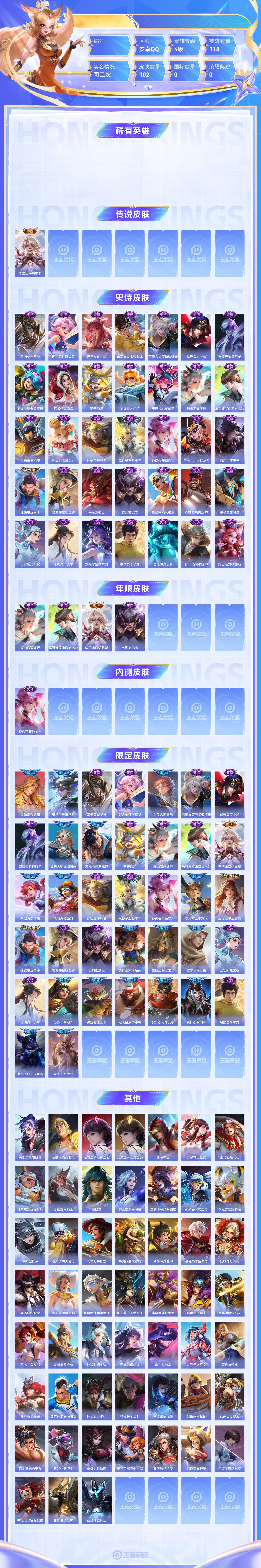 【终身找回包赔】【6J4XOFHBA】传说1史诗35限定37英雄118皮肤102稀有英雄8贵族4级皮肤价值:64568 【传说皮肤1】李信山海炽霜斩 【史诗皮肤35】蒙恬荣光圣徽阿古朵江河有灵妲己女仆
