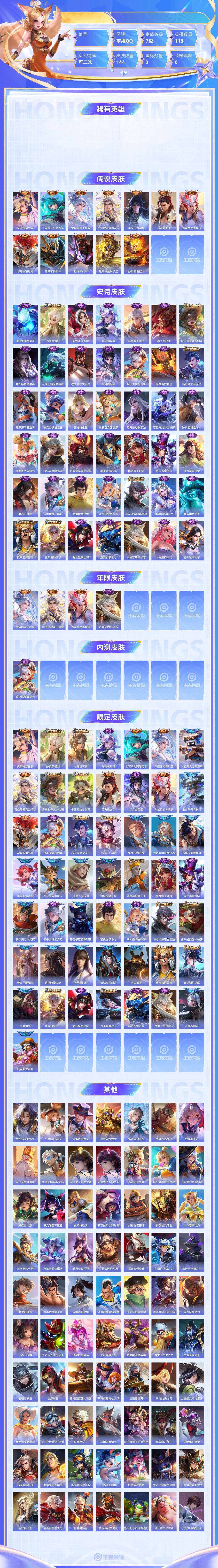 【终身找回包赔】【6IN84BGBG】传说12史诗42限定50英雄118皮肤144稀有英雄6贵族7级皮肤价值:96816 【传说皮肤12】夏洛特浮生妄上官婉儿妄想奇谈女娲愿照千秋盛司空震愿照山河定李信