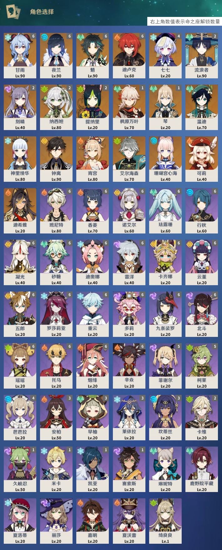 【终身找回包赔】【IKV8VEDDA】57级,101黄,女主,19个五星角色:满命甘雨,满命夜兰,满命魈,满命迪卢克,4命七七,2命流浪者,2命刻晴,2命纳西妲,2命提纳里,1命枫原万叶,1命琴,温迪