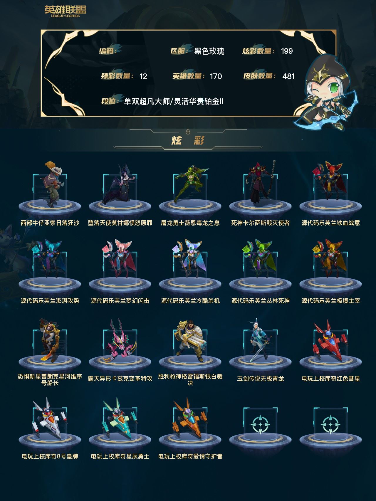 【终身找回包赔】【英雄数量170 皮肤数量0 无段位 召唤师等级0 】【IKV8VF2AH】170英雄/680皮肤总数(原皮+炫彩)/481皮肤/0卓越/0终极/16神话/100限定/12臻彩