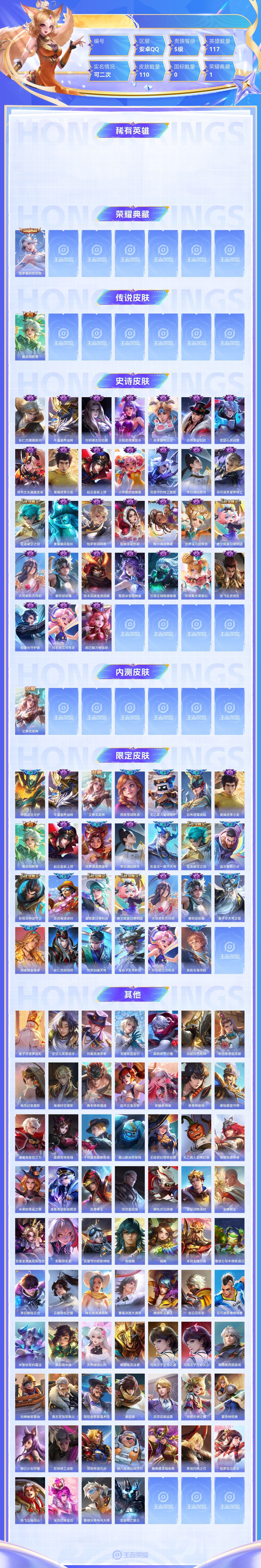 【终身找回包赔】【6JUZQFDCD】典藏1传说1史诗31限定27英雄117皮肤110稀有英雄5贵族5级皮肤价值:84092 【荣耀典藏1】伽罗最初的交响 【传说皮肤1】桑启鸣野蒿 【史诗皮肤31】狄